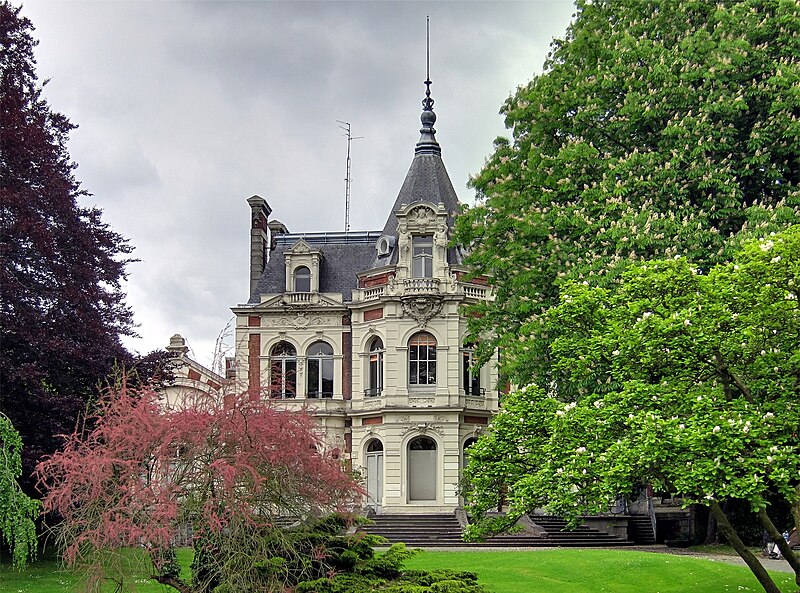 Implanté entre cour et jardin, avec des écuries dans la cour, cet hôtel particulier a été construit par Pierre Catteau vers 1880-1884 sur l'une des artères majeures de la ville. Homme politique et industriel, Pierre Catteau avait créé en 1845 à Roubaix une entreprise de fabrication de popeline et de tissus en laine. Exemple du « château d'industriel », l'édifice associe la recherche architecturale d'Auguste Dupire-Rozan à l'aménagement du parc confié à Georges Aumont, auteur notamment du Parc Barbieux à Roubaix et du parc de la Préfecture de Lille. L'intérêt se concentre sur les façades extérieures ; l'intérieur, en revanche, ne présente pas d'intérêt majeur.