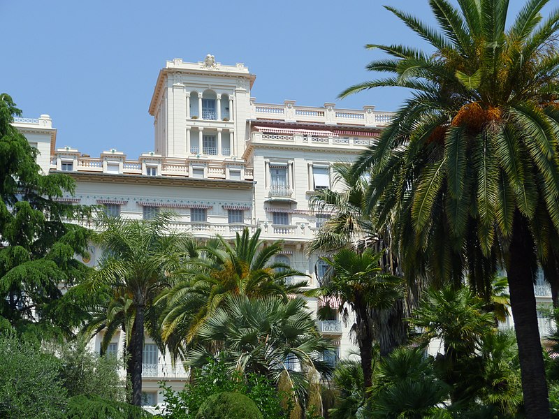 L'ancien hôtel Riviera-Palace, situé 28 avenue Riviera à Menton (Alpes-Maritimes), est un témoignage des grands hôtels-palais qui ont marqué la ville balnéaire. Menton est devenue, entre 1860 et 1914, une ville de villégiature internationale desservie par le train dès 1869, ouvrant la place à de nombreux hôtels et villas. Construit au tournant du XXe siècle sur la colline de l'Annonciade pour Joseph-Arthème Widmer, l'établissement visait à offrir un palace somptueux entouré d'un vaste parc. La réalisation architecturale fut confiée à Abel Glena ; le décor peint est attribué à Guillaume Cerutti-Maori. Un projet d'extension élaboré par Abel Glena en 1910 a été réalisé par son collaborateur Alfred‑Auguste Marsang et a entraîné une surélévation et l'adjonction d'une aile ouest, portant l'hôtel à 250 chambres. Dans les années 1920, des dépendances furent ajoutées : une aile est aménagée pour le personnel, une maison des cuisiniers à l'arrière, des buanderies près des citernes et une salle de spectacle de 300 places. Pendant la Seconde Guerre mondiale, l'établissement fut réquisitionné ; en 1942 il accueillit l'état‑major de la 4e armée et quelque 300 personnes, subit des aménagements et des dommages liés aux combats. Après la libération de Menton le 6 septembre 1944 et une période de bombardements, certaines chambres furent mises à disposition des rapatriés au printemps 1945. L'hôtel a cessé son activité dans les années 1950 et a été vendu puis transformé en appartements ; le parc, initialement étendu, s'est réduit à un jardin d'environ 1 500 m². Le bâtiment principal présente un corps central rectangulaire, une imposante aile ouest en plan courbe avec un corps bas en rotonde et une aile est plus modeste. Les élévations sud et ouest s'organisent en trois registres superposés ; un haut soubassement réunit le rez-de-chaussée et l'entresol ornés de rotondes, vérandas et d'une marquise d'entrée. Les niveaux supérieurs, à décrochements, forment un couronnement au‑dessus d'un balcon à balustrade ; sous ce balcon, une frise peinte déroule les blasons des pays d'origine de la clientèle. Les façades, de style néo‑classique, sont enrichies de peintures en camaïeu et d'un décor de céramique turquoise provenant de la manufacture Saïssi. Le hall d'entrée, le grand salon, l'escalier en marbre et le salon de musique ont été inscrits au titre des monuments historiques par arrêté du 28 décembre 1979. Les façades et toitures de l'hôtel, la buanderie, le bâtiment des citernes et le jardin ont été inscrits au titre des monuments historiques le 17 octobre 2011. L'ancien hôtel a également reçu le label « Patrimoine du XXe siècle » le 1er mars 2001.