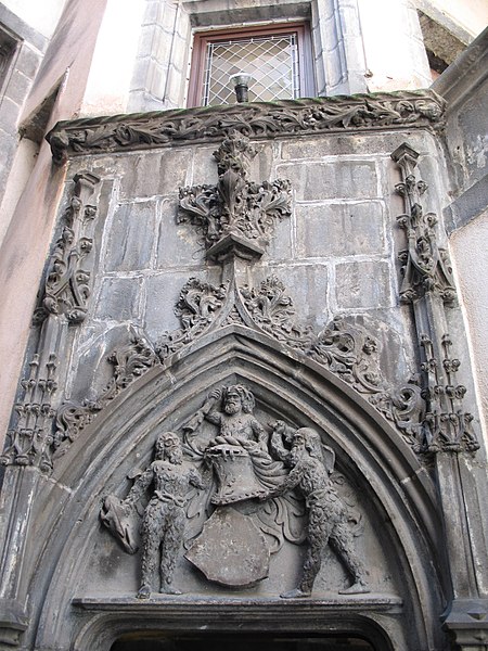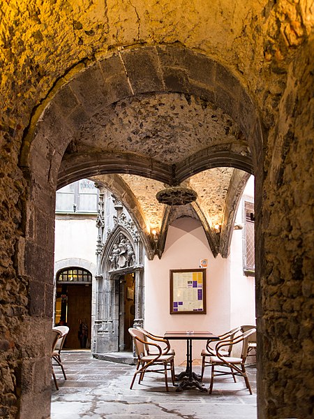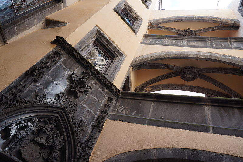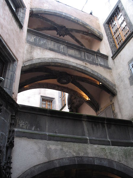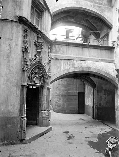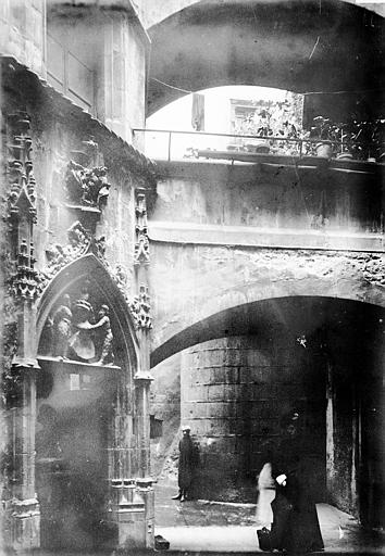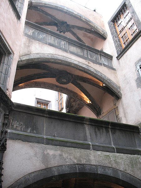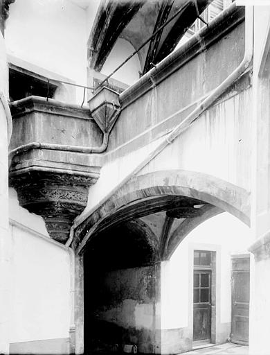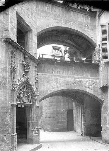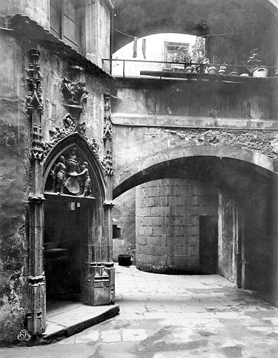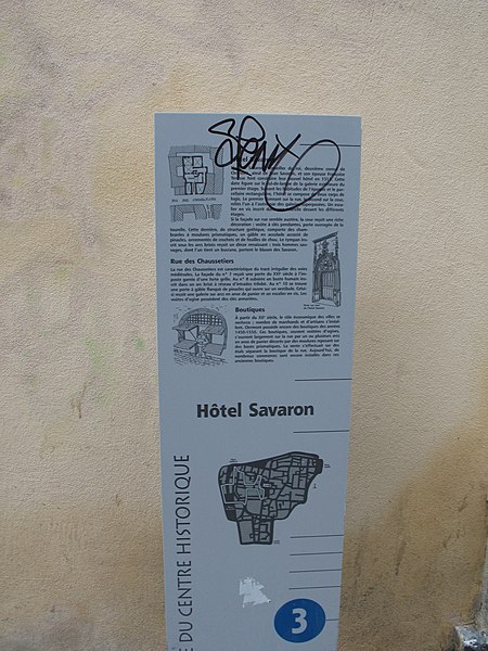 La décoration intérieure et de cour est abondante : voûtes à clés pendantes, portes ouvragées, chambranles à moulures prismatiques et un gâble en accolade flanqué de pinacles ornés de crochets et de feuilles de chou, témoignant d'un gothique flamboyant méridional encore fidèle à la tradition médiévale malgré l'influence de motifs rapportés des Amériques. Les clefs des croisées d'ogive qui portent les ponts sont finement sculptées, ajourées et timbrées au centre du chiffre d'Hugues Savaron. Au rez-de-chaussée bordant la rue, une belle salle voûtée présente des clés de voûte portant soit les armes des Savaron, soit le chiffre d'Hugues Savaron. Les locaux voûtés du rez-de-chaussée, destinés au commerce, rappellent les origines marchandes de la famille ; les initiales H T S F figurent sur la clé de voûte de la première galerie ouverte, et la date de 1513 est également inscrite sur le cul-de-lampe de cette galerie, dissimulée dans une frise végétale.