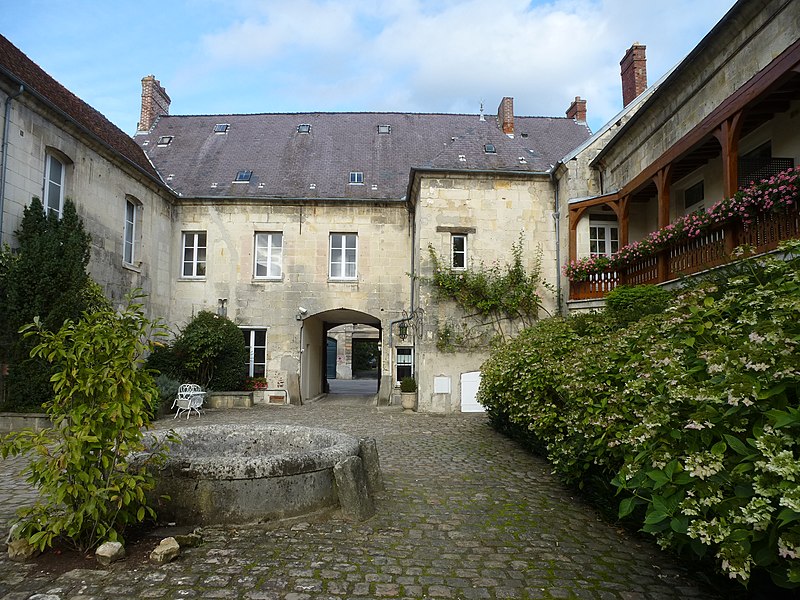 Façades et toitures de l'hôtellerie, à l'exclusion des façades et toitures situées à l'extrémité de l'aile sud-est, et des façades et toitures des anciennes écuries situées à l'extrémité de l'aile nord-ouest ; boiseries et cheminée en pierre de la chambre nommée la Palatine ; escalier de la tour d'angle avec sa rampe ; sol pavé de la cour et son abreuvoir (cad. AB 301) : inscription par arrêté du 19 novembre 1993