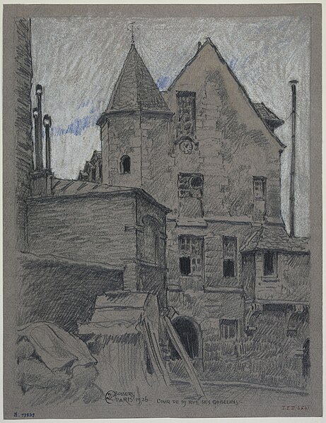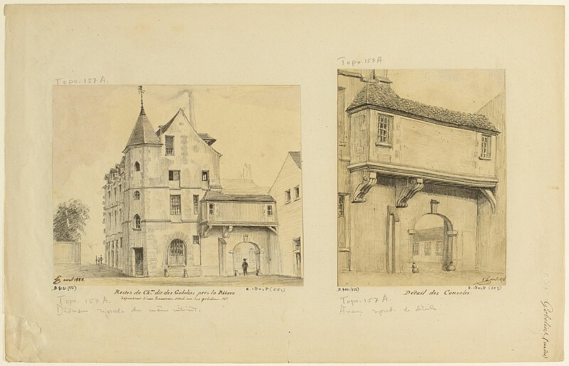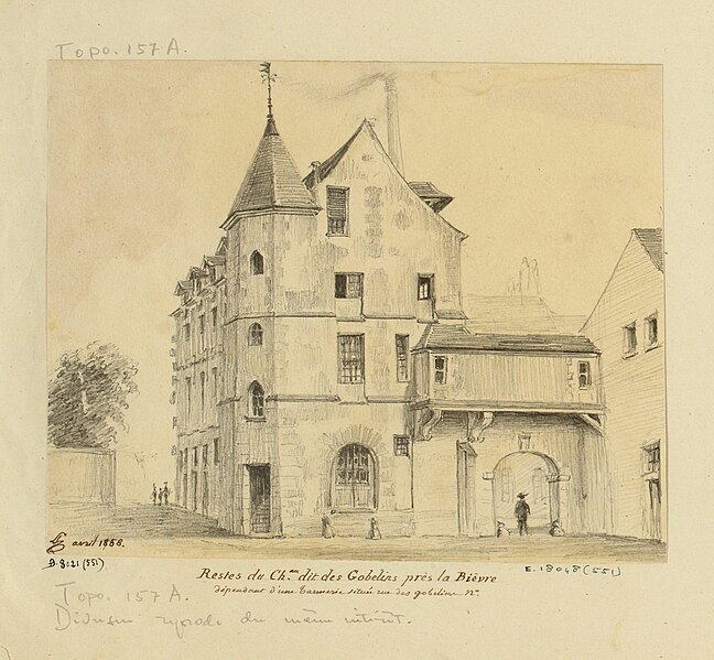 À la fin du Moyen Âge le bourg Saint‑Marcel, hors des murailles de Paris, accueillait déjà des résidences mais s’est progressivement transformé en quartier d’activités industrielles attirées par la Bièvre ; plusieurs familles de teinturiers, dont les Gobelin et les Canaye, s’y installèrent. La famille Gobelin s’implante dès le XVe siècle et développe au XVIe siècle des ateliers de teinture, notamment l’écarlate sous François Ier ; Philibert Gobelin fit aménager une terrasse sur la Bièvre en 1486 et, en 1525, la rue des Gobelins appartient en grande partie à la famille.