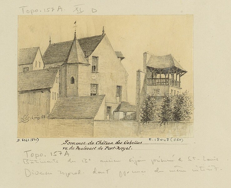 Les bâtiments actuels comprennent des constructions des XVe, XVIe et XVIIe siècles : la maison dite de la Reine Blanche et l’immeuble du 19 rue des Gobelins datent de la fin du XVe siècle, un grand corps de logis à tourelles et caves est élevé entre 1500 et 1535, et un immeuble en retour correspond à une campagne du XVIIe siècle. Deux escaliers à vis, dont le moyeu central unique est un long morceau de bois soutenant la toiture selon des techniques flamandes, sont encore en place. Un ancien mur d’enceinte du XIIIe siècle est visible à l’intérieur du 12, rue Berbier‑du‑Mets. Le pavillon à tour, détruit pendant la Commune de Paris, a été reconstruit à l’identique.