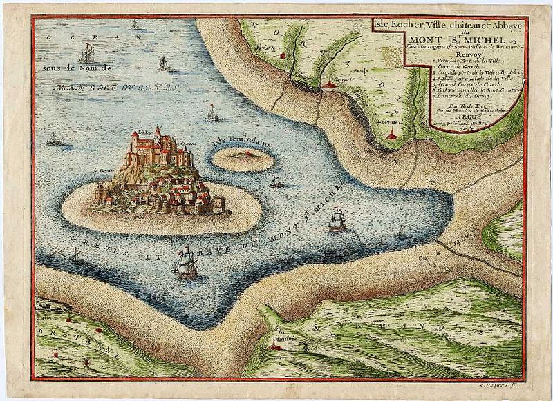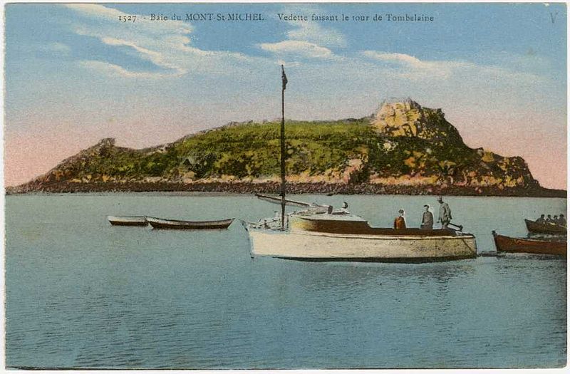 Selon la tradition, la baie était autrefois plus vaste et seules trois îles émergeaient : le mont-Dol, le mont Tombe et Tombelaine. Une légende raconte qu'Hélène, fille du roi Hoël, aurait été enlevée par un géant et inhumée sur le rocher, d'où le nom « Tombe Hélène ». Un autre récit associe l'îlot au dieu gaulois Belenos et évoque un ancien sanctuaire gardé par des prophétesses. L'explication la plus vraisemblable de l'origine du toponyme est un dérivé de tumba, « tertre » ou « butte », donnant une forme ancienne *tumb-ell-ana, « petit mont Tombe ».