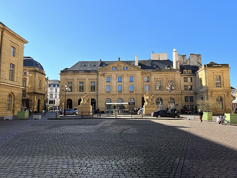 L'immeuble dit ancien Parlement se situe place d'Armes à Metz et fait face à l'ancien corps de garde. Conçu par Jacques‑François Blondel en même temps que l'hôtel de ville, il devait abriter le parlement rétabli le 26 septembre 1775. L'initiative de repenser l'urbanisme de Metz revient au maréchal Charles Louis Auguste Fouquet de Belle‑Isle, acquis aux idées des Lumières, qui entreprend ces projets dès 1728. Après avoir fait édifier un nouveau théâtre sur l'île du Petit‑Saulcy, il propose d'aérer le secteur de la cathédrale en créant une place royale centrale entourée de bâtiments publics. Après vingt ans de négociations avec le clergé et les bourgeois messins, Blondel est chargé du projet de l'hôtel de ville et des bâtiments annexes. La construction de l'hôtel du Parlement débute en 1761, en même temps que celle de l'hôtel de ville, et s'étend sur dix ans. Bâti en pierre de Jaumont, l'édifice présente un caractère néoclassique français et une façade marquée par un avant‑corps central sur trois niveaux. Cet avant‑corps comporte un rez‑de‑chaussée percé de trois arcades en plein cintre, surmonté de deux étages percés chacun de trois fenêtres. À gauche de l'avant‑corps, la façade montre trois fenêtres réparties sur deux niveaux ; à droite, une porte cochère, deux arcades et un étage noble rythment la composition, avec deux fenêtres à la française et deux fenêtres simples. Malgré son asymétrie, la façade conserve une grande harmonie ; l'avant‑corps est couronné d'un fronton percé de deux oculi encadrés de feuilles de chêne sculptées. L'immeuble a connu plusieurs affectations depuis sa création au XVIIIe siècle et abrite aujourd'hui des commerces. Dans le cadre de la restauration de la place d'Armes menée en 2007, l'architecte en chef des monuments historiques Christophe Bottineau a fait nettoyer des façades fortement altérées par la pollution. La façade et la couverture de cet édifice néoclassique font l'objet d'un classement au titre des monuments historiques depuis 1922 et 1928. Pour compléter la lecture du monument, on peut se reporter à la place d'Armes, à la liste des monuments historiques de la Moselle et aux ressources en ligne telles que la base Mérimée, le portail de Metz et les portails consacrés à l'architecture, à l'urbanisme et aux monuments historiques français.