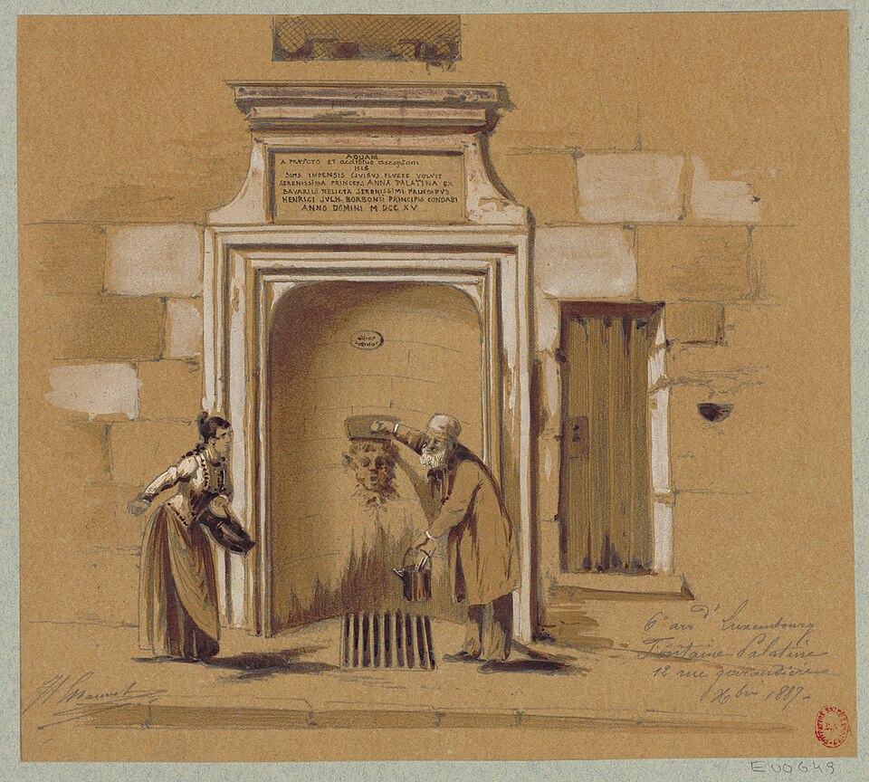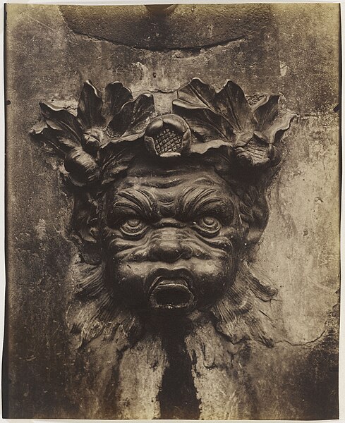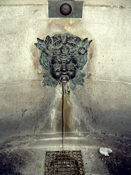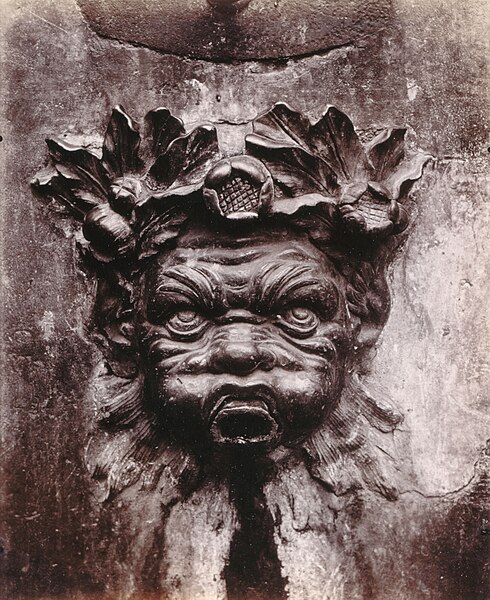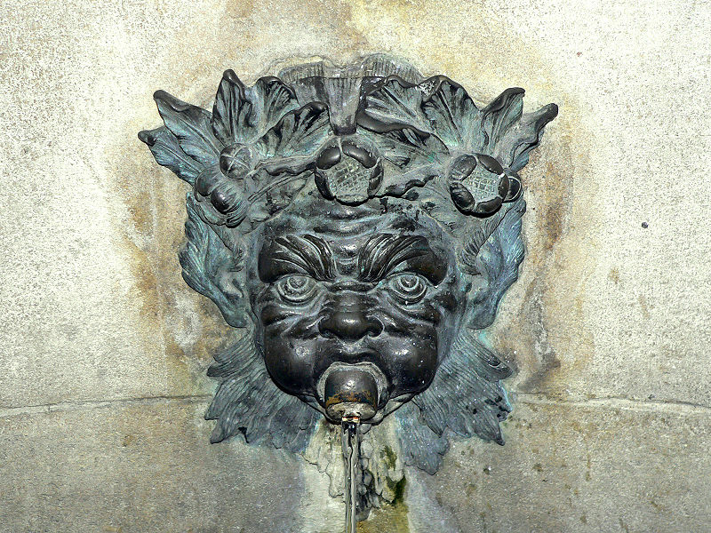 Le mascaron en bronze de l'ancienne fontaine : inscription par arrêté du 12 janvier 1962