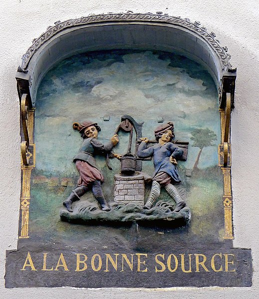 Enseigne représentant des porteurs d'eau au premier étage de la façade : inscription par arrêté du 29 mars 1928