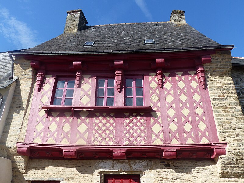Le rez-de-chaussée est en maçonnerie. La porte et une fenêtre conservent des traces de chanfreins et d'une accolade, aujourd'hui bourrées de mortier. Les murs pignons sont en encorbellement, prolongeant l'avancée du pan de bois, et les extrémités des poutres saillent. Des motifs floraux sculptés subsistent. La maison a été construite à la fin du XVIe ou au début du XVIIe siècle ; l'aménagement intérieur date du XVIIIe siècle.