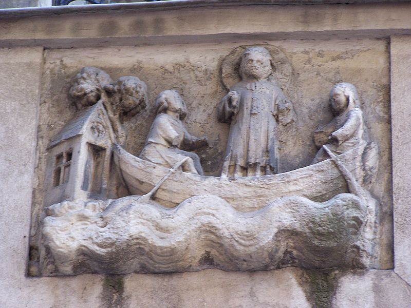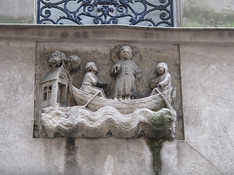 Bas-relief représentant Saint-Julien-l'Hospitalier encastré dans la façade : inscription par arrêté du 27 février 1925