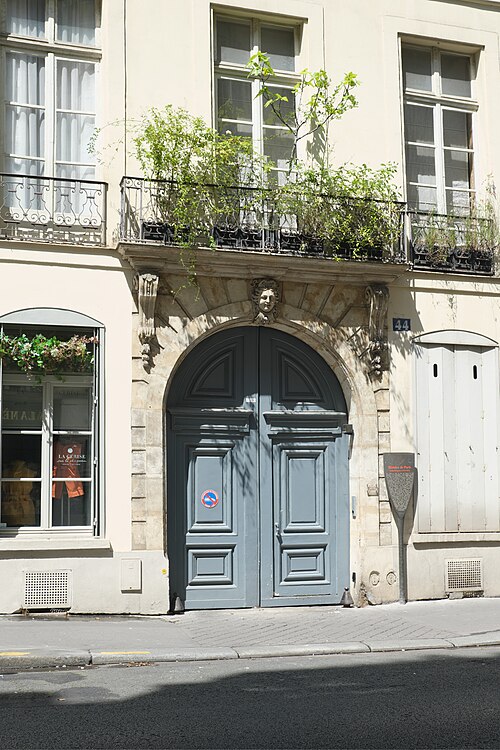 La façade sur rue et la façade postérieure du bâtiment sur rue ; les toitures correspondantes ; les façades et les toitures sur cour des bâtiments au fond de la cour ; le sol des cours ; dans le bâtiment sur rue, la cage d'escalier avec sa rampe : inscription par arrêté du 12 octobre 1964