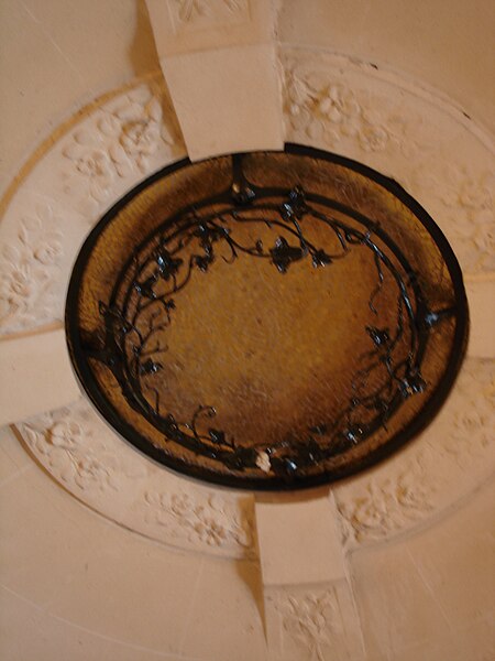 Création du vitrail jaune d'or par P. Roye.