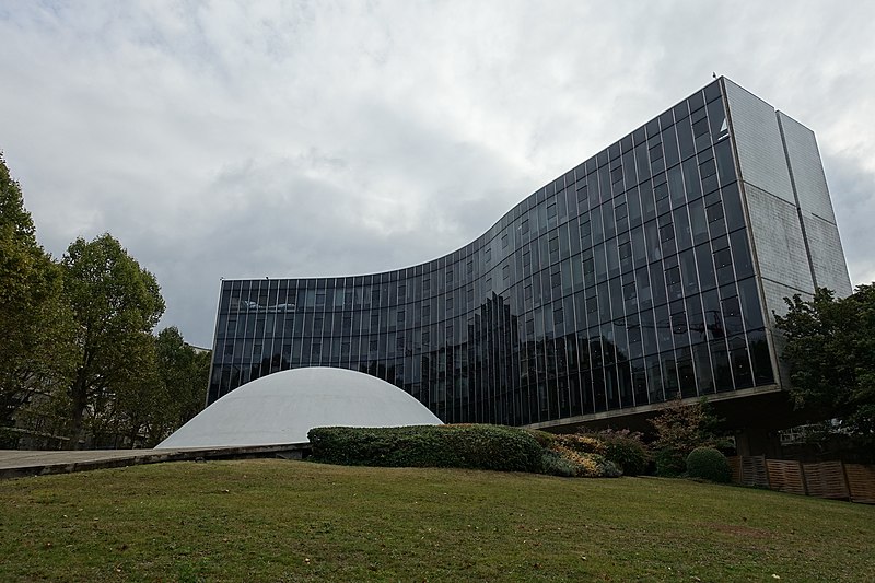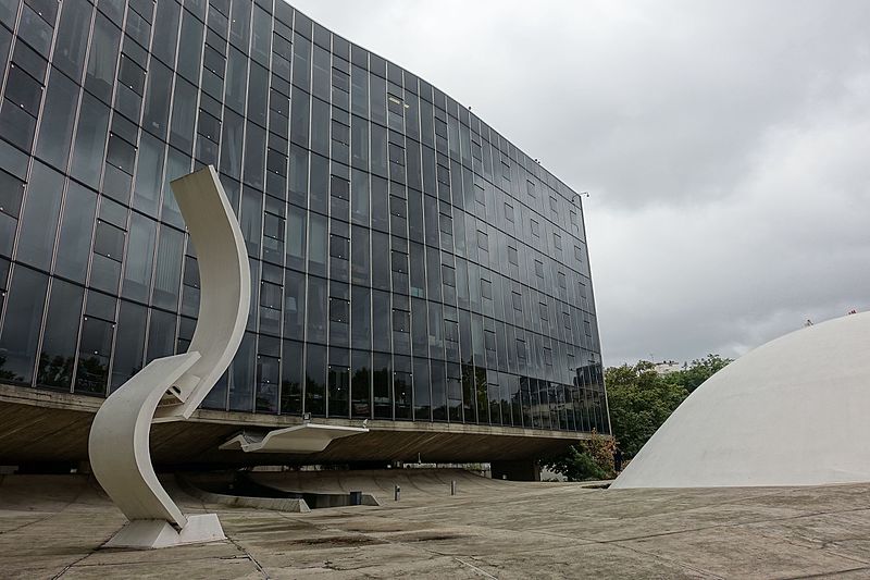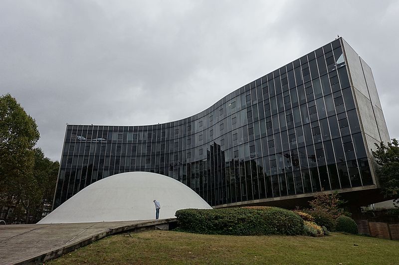 Le siège du Parti communiste français occupe depuis 1971 le 2, place du Colonel-Fabien, dans le 19e arrondissement de Paris ; il était auparavant installé au 44 rue Le Peletier dans le 9e arrondissement. L'esquisse du projet a été dressée par l'architecte brésilien Oscar Niemeyer en 1965 ; les travaux, conduits en collaboration avec Jean Prouvé, Jean Deroche et Paul Chemetov, ont commencé en 1968 et le bâtiment principal a été achevé en 1971, la coupole, le parvis et le hall souterrain étant terminés en 1979-1980. Les façades sont entièrement recouvertes d'un mur-rideau réalisé par Jean Prouvé. L'édifice repose sur cinq piliers en béton massif qui structurent l'espace intérieur du grand hall et donnent l'impression que le bâtiment flotte au-dessus du sol. Sa forme en « S », marquée par des courbes et contre-courbes, répond à la volonté de masquer les immeubles voisins tout en assurant le contreventement ; les étages portent exclusivement sur ces poteaux. Une terrasse-belvédère aménagée en gradins couvre les installations de climatisation et offre un point de vue sur la ville. Sous le bâtiment, le vaste foyer souterrain dit « foyer de la classe ouvrière » s'étend sur trois niveaux et se développe autour de quatre piliers en béton ; le premier niveau sert d'entrée et d'espace d'exposition, le deuxième accueille bureaux, salles de réunion et de détente ainsi qu'une cafétéria et des circulations menant à la salle du Conseil national, et le troisième abrite archives et bureaux. Les parois moulées laissées en béton brut de décoffrage, avec traces de planches et têtes de clous, témoignent d'un parti pris didactique qui met en valeur l'art du béton et la matérialité des volumes. La coupole blanche qui surplombe la salle du Conseil national, achevée en 1980, est un volume simple en béton recouvert de résine et peint en blanc ; elle dialogue avec les courbes du grand bâtiment et s'impose au milieu de la pente. Cette grande salle, à moitié intérieure et à moitié extérieure, peut accueillir environ 250 personnes autour de longues tables blanches et est dominée par une tribune protégée par une aile de béton. Les parois du plafond sont revêtues de milliers de lames métalliques perpendiculaires entre elles, dispositifs acoustiques qui diffusent le son et réfléchissent la lumière, tandis que les lourdes portes latérales sont actionnées par des pistons hydrauliques. L'entrée principale et le vaste hall de plus de 1 000 m2 constituent l'Espace Niemeyer, destiné à accueillir des expositions et événements culturels ; cet espace a présenté des expositions telles que Putain de guerre ! de Jacques Tardi en 2014 et Horsesvisions de Jacques Benoit et Véronique Durruty en 2015. Pour générer des ressources financières, le parti a autorisé à partir des années 2000 l'organisation de défilés de mode et d'autres événements : Robert Hue a d'abord donné son accord à un défilé de la marque Prada, suivi par d'autres créateurs comme Thom Browne et Jean-Paul Gaultier. À partir de 2009, une partie des locaux, notamment le deuxième étage, a été louée à des cabinets d'architecture, des studios de design et des maisons de production. Le bâtiment a servi de décor à de nombreux clips, films, séries et concerts privés, citant parmi d'autres le clip de Nuttea (2000), des collaborations avec Alain Souchon (2005) et Angèle (2018), des films tels que De l'autre côté du périph (2012), L'Écume des jours (2013) ou Osmosis (2019), la série Trepalium (2015) et Oxygène (2021). Sur le plan symbolique, sa situation place du Colonel-Fabien, qui porte les mêmes initiales que le parti, renforce le lien entre l'architecture et l'identité politique ; le Programme commun y fut signé en 1972. Le siège a été classé au titre des monuments historiques le 26 avril 2007. Le bâtiment est desservi par la ligne 2 du métro, station Colonel Fabien.