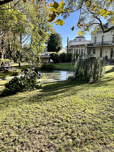 L'immeuble, ancien hôtel particulier Massion aujourd'hui appelé Hôtel de la Marine, se situe au n°2 de la place Général‑Mellinet à Nantes. La place Mellinet, aménagée sur l'ancienne propriété de Launay pour accompagner l'extension de la ville vers l'ouest et le port, est bordée de huit hôtels particuliers aux façades identiques avec parc à l'arrière, dessinés par Étienne Blon et Louis Amouroux. Construit en 1874, cet hôtel est la dernière des huit demeures réalisées sur la place et respecte le dessin imposé pour cet ensemble. Bâti en granit et tuffeau, il présente côté place une façade conforme au modèle de Mellinet, avec un rez‑de‑chaussée à refends adapté au dénivelé, cinq fenêtres à l'étage encadrées par des pilastres jumelés, un entablement orné de triglyphes et métopes, et un toit en ardoise. Côté jardin, l'architecte Eugène Démangeat a dessiné une façade de style néo‑Louis‑XV, caractérisée par un balcon filant au premier étage avec garde‑corps en fer forgé et des fenêtres ornées de mascarons. L'intérieur conserve une cage d'escalier décorée de boiseries et un salon lambrissé en acajou de l'époque de la Restauration; le grand salon abrite une taque de cheminée en fonte du XVIIIe siècle. Le jardin arboré, d'une surface de 4 407 m², comprend une roseraie et des arbres exotiques plantés entre 1874 et 1890, parmi lesquels des cèdres de l'Himalaya et de l'Atlas, un tulipier de Virginie, un séquoia et des magnolias. La résidence, d'une surface de 871 m², a appartenu successivement à Gustave Massion, raffineur, aux sœurs de Loynes, puis à Georges Hailaust, négociant en bois installé en 1919. À la fin du XXe siècle, l'hôtel abrite la Direction régionale des impôts; la société Akeneo l'occupe depuis avril 2016. La façade de l'Hôtel de la Marine a été inscrite au titre des monuments historiques par arrêté du 24 octobre 1988; le jardin, un escalier et les salons ont été inscrits par arrêté du 29 août 2011.