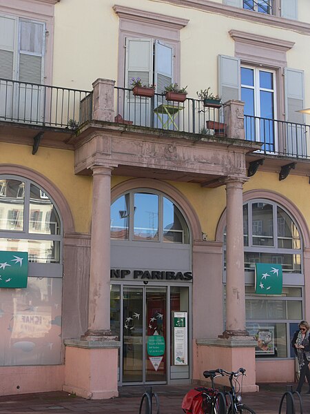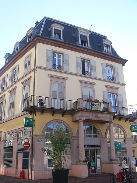 L'immeuble bordant la place de la République, situé au 8 de la place et aux angles des rues Poincaré et du Maréchal-de-Lattre-de-Tassigny à Mulhouse, est inscrit au titre des monuments historiques depuis 1986. Il fait partie d'un lotissement concerté réalisé pour la Société du Nouveau Quartier à partir de 1826 par les architectes Félix Auguste Joseph Fries et Jean Geoffroy Stotz. Disciples de Percier et Fontaine, ils adoptent un parti inspiré de la rue de Rivoli à Paris, notamment par l'emploi d'arcades en rez-de-chaussée. Les promoteurs de cet ensemble étaient les principaux industriels de Mulhouse, qui y établirent leur demeure. Le nouveau quartier comprenait l'hôtel de la Société industrielle, des maisons privées, des cafés et, à l'origine, un jardin privé. La construction se poursuivit jusqu'environ 1840, sans que le projet initial ne soit entièrement mené à terme. Cet ensemble du début du XIXe siècle reste unique en Alsace.