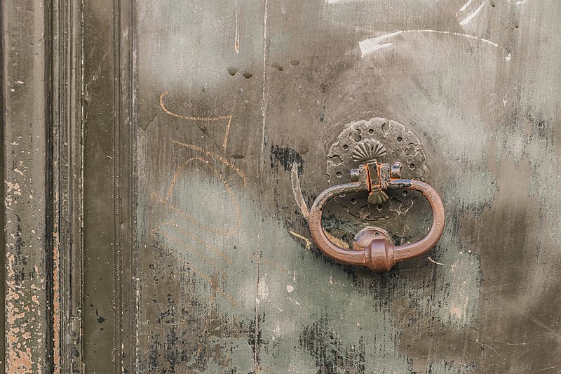 L'immeuble présente une porte en chêne mouluré à grand cadre, datée du XVIIIe siècle. À deux vantaux qui s'ouvrent par le milieu, elle est encadrée d'une architecture d'ordre dorique composée de deux pilastres supportant un entablement orné de triglyphes. La clé de la plate-bande est sculptée.