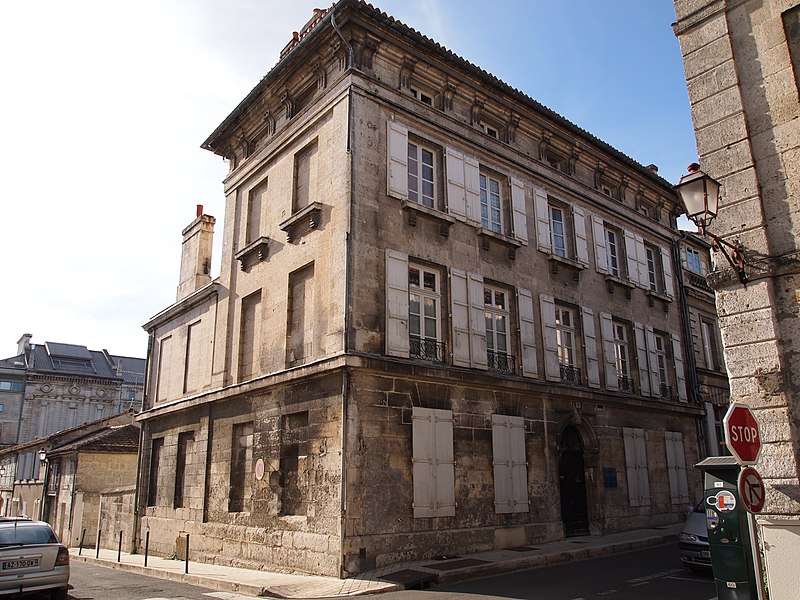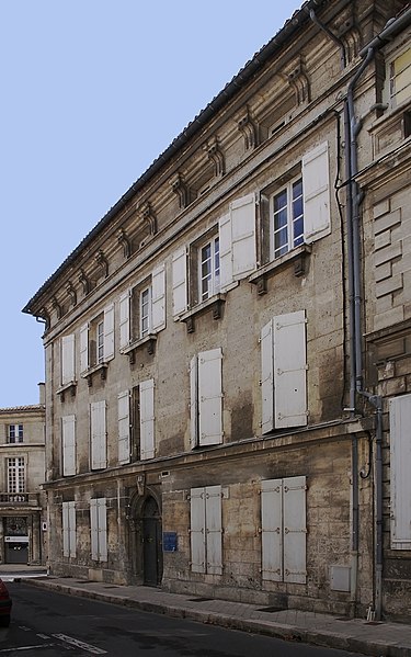 L'emplacement de ce quartier correspond à l'ancienne réserve de chasse du château d'Angoulême, lotie aux XVIIIe et XIXe siècles. L'immeuble présente une façade à quatre étages dont les percements sont réguliers et rythment l'ensemble. Le rez-de-chaussée est séparé des deux étages supérieurs par un bandeau très saillant, et un bandeau plus large marque la limite entre le second étage et l'étage supérieur sous corniche, traité en mezzanine. Au rez-de-chaussée, deux baies encadrent de chaque côté la porte d'entrée surmontée d'un arc en plein cintre reposant sur des pilastres à chapiteau dorique ; une clef saillante orne la partie supérieure de l'arc. Le premier et le second étage sont percés chacun de cinq baies rectangulaires identiques ; celles du premier sont pourvues de garde-corps en fer forgé. Les fenêtres du second ont un appui saillant droit, soutenu par deux consoles rectangulaires et orné d'un cercle en saillie ou de gouttes. La mezzanine comporte cinq baies rectangulaires, encadrées chacune de pilastres cannelés qui font également office de consoles supportant la corniche très moulurée. Le chapiteau de chaque pilastre est décoré, sur sa surface, de deux gouttes.