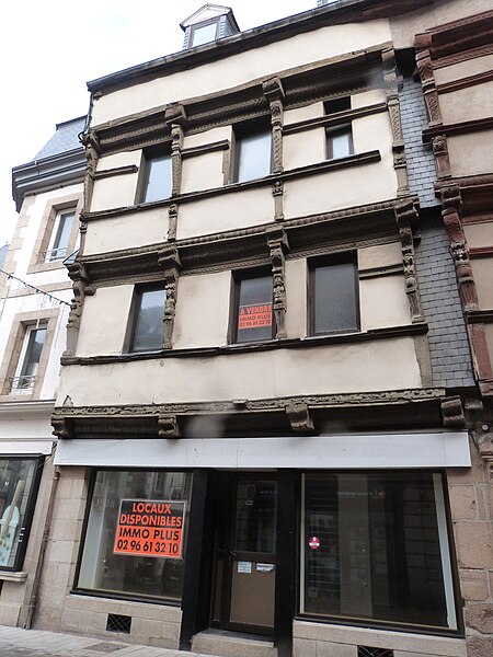 Maison à pans de bois située à Lannion (Côtes-d'Armor, Bretagne), place du Général-Leclerc, au 3 rue Geoffroy-de-Pont-Blanc.