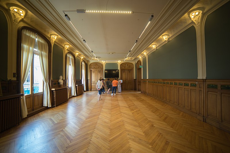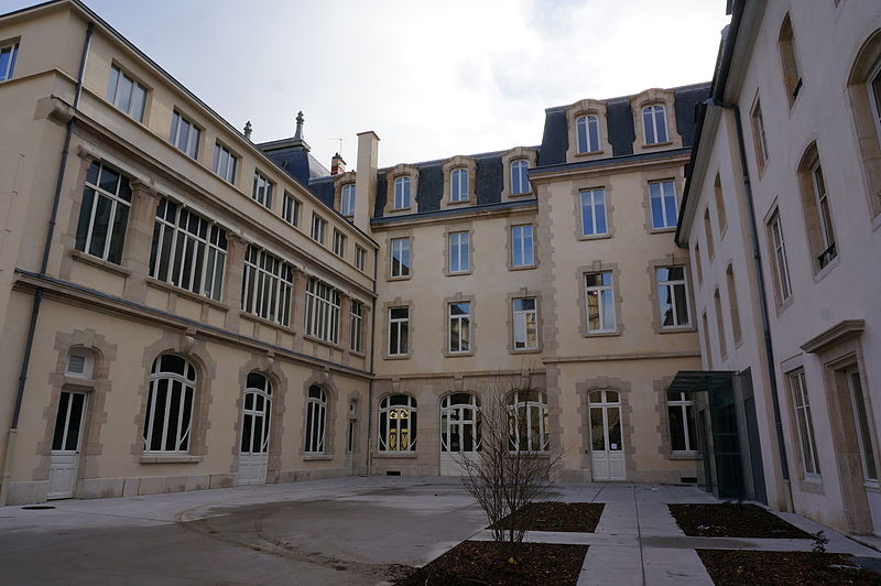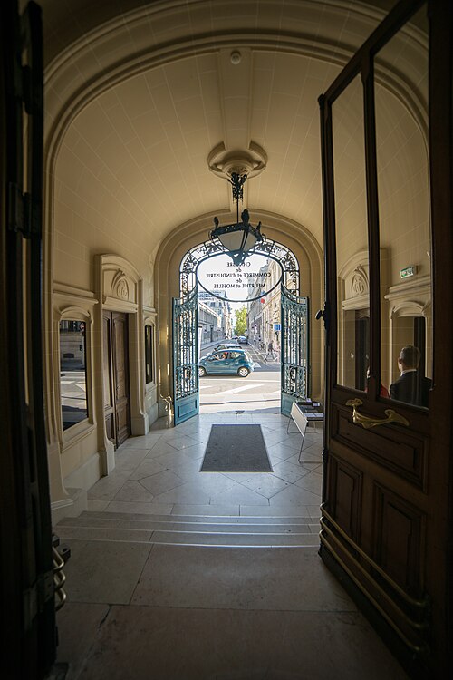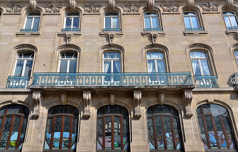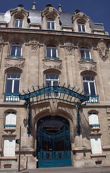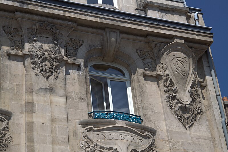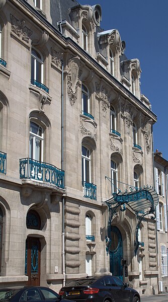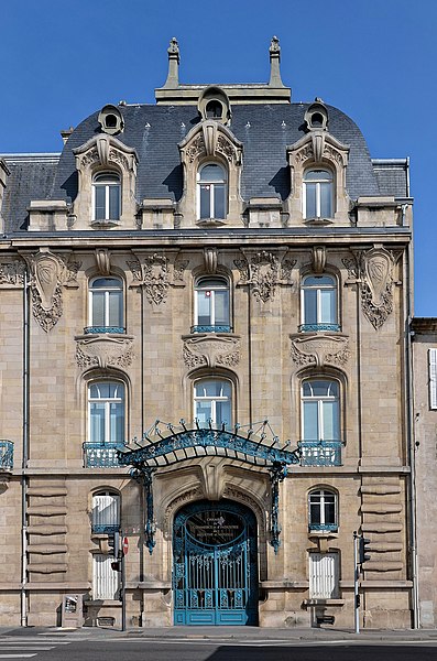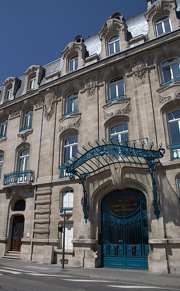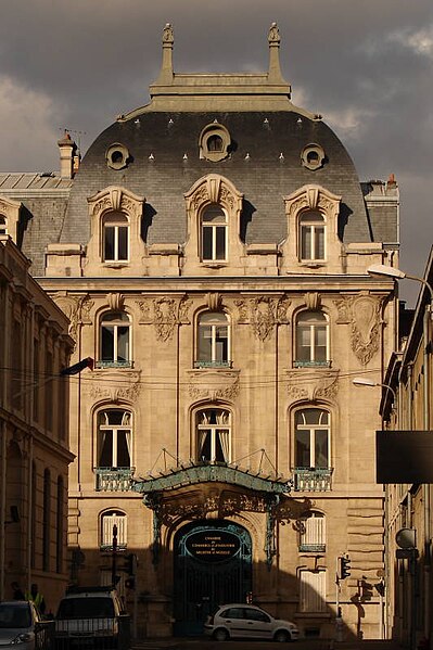 L'immeuble qui abrite le siège de la Chambre de commerce et d'industrie de Meurthe-et-Moselle à Nancy a été construit entre 1906 et 1908 pour la Chambre de commerce et la Société industrielle de l'Est, puis inauguré en juin 1909. Le projet néo‑classique des architectes Émile Toussaint et Louis Marchal, choisi à l'issue d'un concours ouvert aux architectes de l'Est, succéda à une première étude confiée en 1903 à l'ingénieur Henri Gutton, après la proposition d'Antonin Daum de lancer ce concours. Les plans d'exécution datent du 1er juin 1905 ; l'entreprise Malesset Couty assura le gros‑œuvre et Frédéric Schertzer la charpente métallique, réalisée avec de l'acier fourni par une usine de Pompey. Louis Majorelle fournit les ferronneries tandis que Jacques Gruber exécuta les verrières et la décoration sculptée de la façade, l'ensemble sculpté et verrier ayant été réalisé en 1909. Le décor intérieur associe de nombreux artisans nancéiens : Louis Burtin et Pierre Claudin pour les stucs, Louis Guingot pour une peinture de la salle de la Société industrielle de l'Est au rez‑de‑chaussée, et le menuisier Petit pour les lambris. Les lambris de la salle de réunion du premier étage comportent des pâtes de verre réalisées par Amalric Walter de la maison Daum. Entre 1912 et 1913, les architectes ajoutèrent un étage de comble au corps principal donnant sur la rue, entraînant la disparition de la terrasse couverte en ciment. En 1955 la grande verrière du hall de la bourse fut déposée, et en 1979 le mobilier de la salle de réunion de la Société industrielle de l'Est au rez‑de‑chaussée fut en partie démonté puis remonté au musée de l'École de Nancy. Représentatif de l'Art nouveau et de l'École de Nancy, l'édifice réunit architecture, ferronnerie, verrerie et arts décoratifs réalisés par des acteurs majeurs du mouvement. Une partie importante du bâtiment bénéficie d'une protection au titre des monuments historiques : la façade et la toiture sur rue, la marquise de Majorelle, le vestibule, la cage d'escalier, la salle dite de la bourse avec ses verrières de Gruber ainsi que la salle dite du conseil et ses décors ont été inscrites le 4 mai 1994. Les verrières de Jacques Gruber ont été classées le 5 juillet 1996 et un arrêté du 28 février 2013 a étendu la protection à l'ensemble des façades et toitures de plusieurs bâtiments, au couloir du rez‑de‑chaussée, à l'intérieur de la salle des vitraux, à la salle Jean‑Lamour et au bureau du président du bâtiment B.