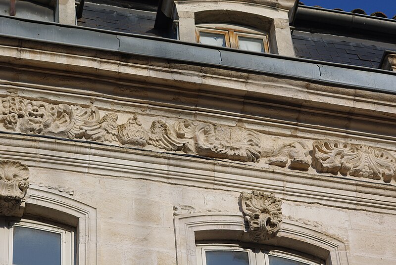 La façade : classement par arrêté du 8 août 1922 - En totalité, les façades et toitures de l'immeuble y compris son couloir d'accès, la cour intérieure « J » et son escalier, et à l'exclusion de la façade sur rue de la République classée, ainsi que l'appartement du premier étage du bâtiment « C » en totalité avec ses décors, y compris la poutre à engoulants du XVIe siècle inscrite en partie par arrêté du 4 janvier 1934 (cad. AN 60) : inscription par arrêté du 25 janvier 2016