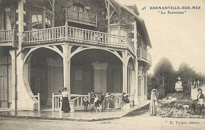 La Sapinière est un immeuble, dit « villa », situé à Hermanville-sur-Mer (Calvados), construit par Hector Guimard en 1899 et constituant le seul exemple connu d'ouvrage collectif qu'il a réalisé pour la villégiature. Les façades, les toitures et l'assiette des sols de la parcelle sont inscrites au titre des monuments historiques depuis le 21 décembre 2015. L'édifice se trouve à l'angle de la rue du Pré-de-l'Isle (n°567) et de la rue des Ombrages (n°160) ; la rue du Pré-de-l'Isle est un ancien chemin parallèle à la mer, l'avenue Henri-Gravier ayant été tracée ultérieurement. On peut atteindre le front de mer, situé à environ 75 m, par une venelle aujourd'hui nommée allée Armand Fichot. L'immeuble a été réalisé pour le Parisien Jean-Auguste Barthélémy. Initialement, le rez-de-chaussée abritait des boutiques et les étages des appartements destinés à la location saisonnière. Implantée à l'extrémité ouest d'Hermanville-sur-Mer, à la limite avec Lion-sur-Mer, la construction repose sur des caves et comporte trois niveaux d'élévation, le dernier étant sous combles. Le plan forme un bâtiment concave composé de deux ailes en équerre. Certains éléments d'angle ont été dévalorisés par la disparition des menuiseries et de la terrasse-balcon en bois, de même que les bow-windows qui existaient au niveau de cette terrasse. Au rez-de-chaussée, les façades alternent parements de briques, enduits imitant des joints et quelques pierres de taille et moellons qui soulignent les arcatures et l'articulation autour de la porte d'entrée et des vitrines commerciales. Les étages recourent principalement au moellon à tête dressée, dont les formes et les saillies structurent l'édifice. Les encadrements des ouvertures associent briques, galets et linteaux en pierre de taille, créant un jeu de lignes et de couleurs qui anime la façade, même si de nombreux balcons et fenêtres ont été remplacés. À l'arrière, une coursive et un escalier en béton donnant accès au rez-de-chaussée ne sont pas d'origine. Sous certaines fenêtres, l'architecte a procédé à des remplages de galets, allusion architectonique au lieu d'implantation et à sa symbolique. Des photographies montrent l'immeuble autour de 1900, en 2013 sans son balcon d'origine, et la façade arrière en 2020. Les renseignements figurent notamment sur le portail du Calvados, le portail de l'Art nouveau et le portail des monuments historiques français.