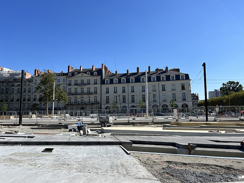 En raison du sol marécageux de l'île Feydeau, les constructions reposent sur des remblais et des dispositifs de stabilisation ; Pierre Rousseau introduit à Nantes la technique dite de la « grille ou radier à la hollandaise », déjà utilisée ailleurs en France. Les matériaux employés sont le granit en rez-de-chaussée, le tuffeau pour les étages supérieurs, une fine couche de pierre de Sireuil en parement intermédiaire, et le marbre pour les sols des balcons et les mascarons ; la pierre de la base provenait de la carrière Miséry et le tuffeau était acheminé de Saumur. Après les destructions de la Seconde Guerre mondiale, le dernier étage reconstruit dans les années 1950 a vu le tuffeau d'origine remplacé par de la pierre de Saint-Savinien, plus dure et plus résistante en usage à l'époque.