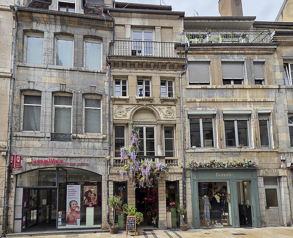 L'édifice, composé de deux logis parallèles, a été construit au XVIIe siècle. En 1789, la veuve Dandré, alors propriétaire, confia à l'architecte Claude-Antoine Colombot une intervention sur la façade sur rue du logis principal. Le premier projet de Colombot, non réalisé et critiqué par l'architecte-voyer Charles-François Longin, modifiait peu l'élévation existante : seules deux baies centrales du premier étage auraient été réunies en une porte-fenêtre au seuil abaissé sous le bandeau d'appui. Un second projet, beaucoup plus audacieux car transformant entièrement l'ancienne façade, fut finalement adopté malgré le désaccord de Longin, qui n'appréciait que le rez-de-chaussée à bossages. Colombot procéda aussi à des réaménagements de la façade sur cour et au remodelage des espaces intérieurs. Si le salon ovale qu'il créa au premier étage et son antichambre existaient encore en 1964, rien de ces aménagements ne subsiste aujourd'hui ; l'antichambre avait déjà perdu ses lambris à cette date. Au XIXe siècle, le logis sur rue, initialement pourvu de deux étages carrés, fut surélevé d'un étage en retrait doté d'un balcon, et l'escalier à cage ouverte sur cour, en charpente avec rampe en fonte, fut refait à la même époque.