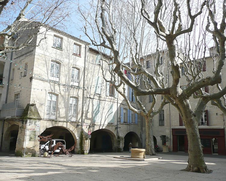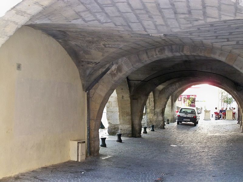 D'abord appelée place du Marché, elle a été ensuite nommée place Vielle puis place de la République. Autrefois bordée d'arcades sur deux côtés, une partie fut démolie en 1775 pour dégager l'accès. Au centre se trouvaient un puits et une croix monumentale, dont il ne reste aucune trace. Les trois arcades restantes et les façades qu'elles soutiennent forment un ensemble pittoresque. Très surbaissées, elles retombent sur de larges piles et supportent trois étages d'habitation, certaines baies ayant conservé leur menuiserie à petits carreaux et des appuis en fer forgé.