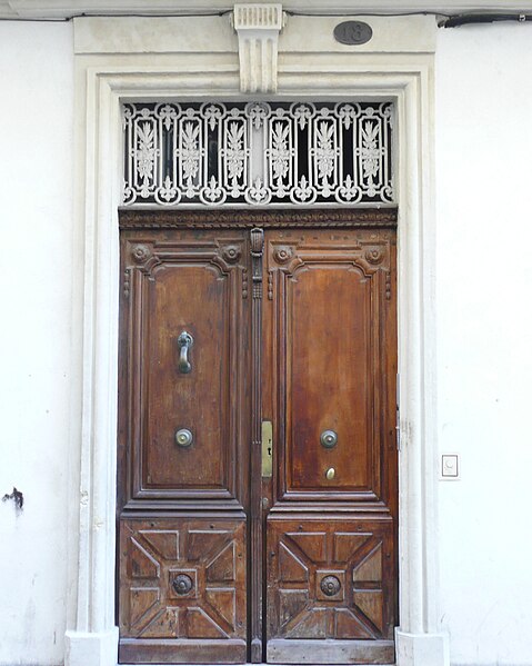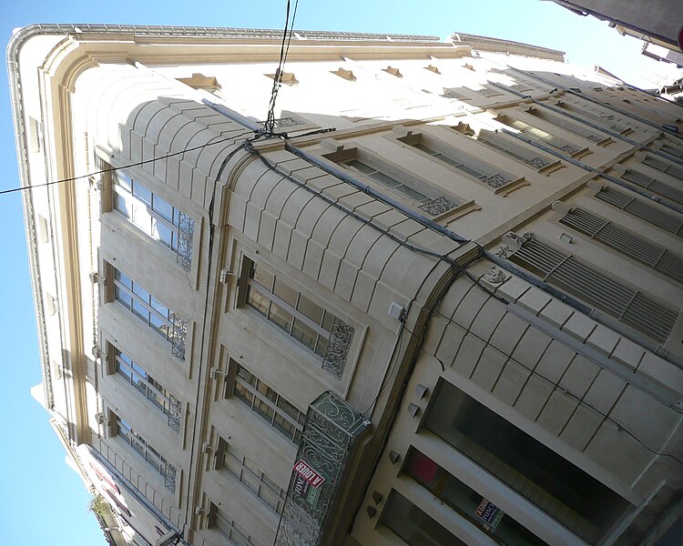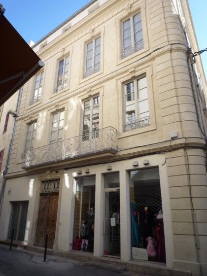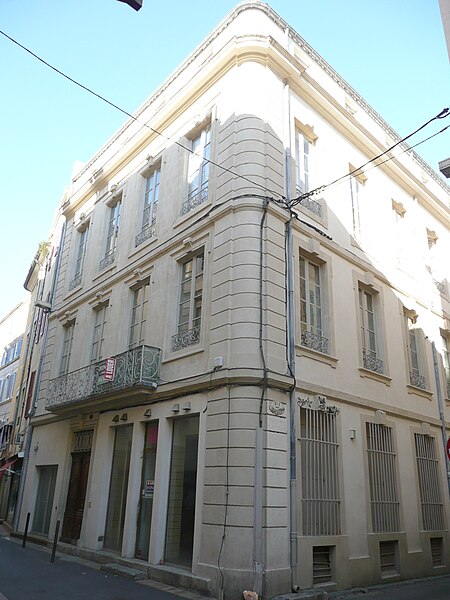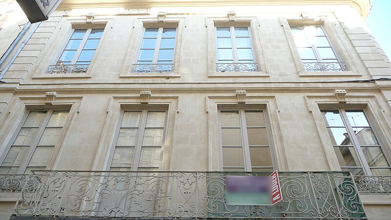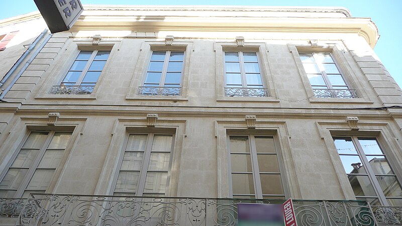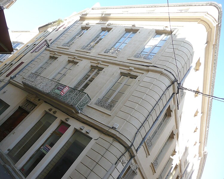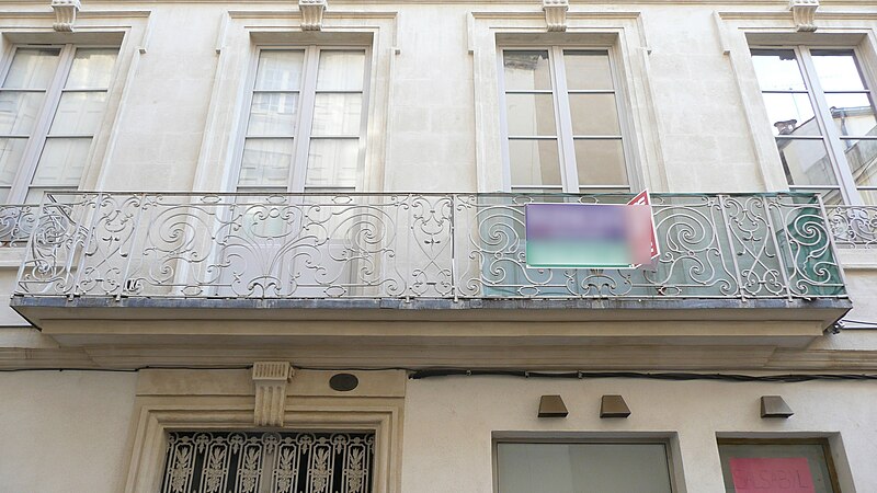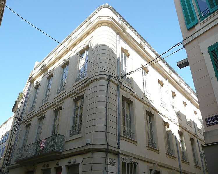 Le site était déjà occupé par un édifice au XVIe siècle. Reconstruite en 1776, la maison n'a pas été modifiée depuis. Les façades s'élèvent sur trois étages et comportent de nombreux percements régulièrement espacés. À la base, les baies grillagées ont fait place, rue des Lombards, à des devantures de boutiques. Au centre de la façade sur la rue des Lombards, un balcon droit relie deux baies du premier étage. Il se compose de deux grands panneaux, un devant chaque porte-fenêtre, complétés par des pilastres et par les panneaux des retours. Chaque grand panneau présente un motif floral de volutes, agrémenté de feuillages opposés et d'un remplage de volutes spiralées à œil unique. Les petits panneaux d'angle sont également formés de volutes multiples à œil unique.