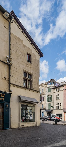 Les moulurations indiquent une construction autour de 1500. Les débouchés de rues sur la place ont été élargis vers 1760. Le rez-de-chaussée est entièrement occupé par une boutique aux revêtements de stuc ; l'élévation comprend un étage principal et un étage sous comble, l'étage principal étant éclairé par deux fenêtres à meneaux, une sur chaque façade.