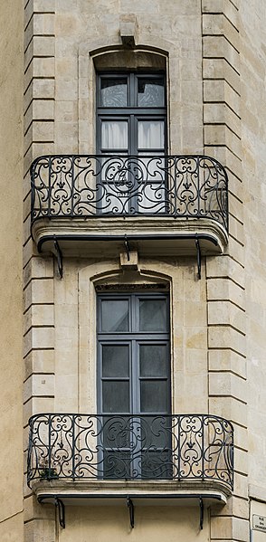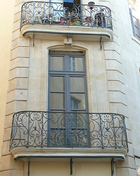 Deux balcons superposés en fer forgé sur le pan coupé à l'angle de la rue des Orangers et la rue Xavier-Sigalon (cad. K 141, 142) : inscription par arrêté du 13 mars 1964