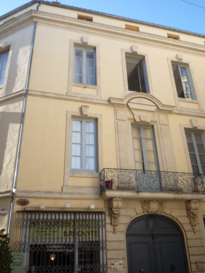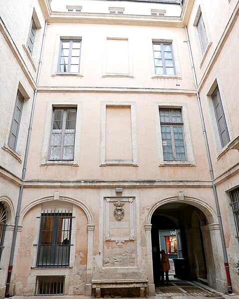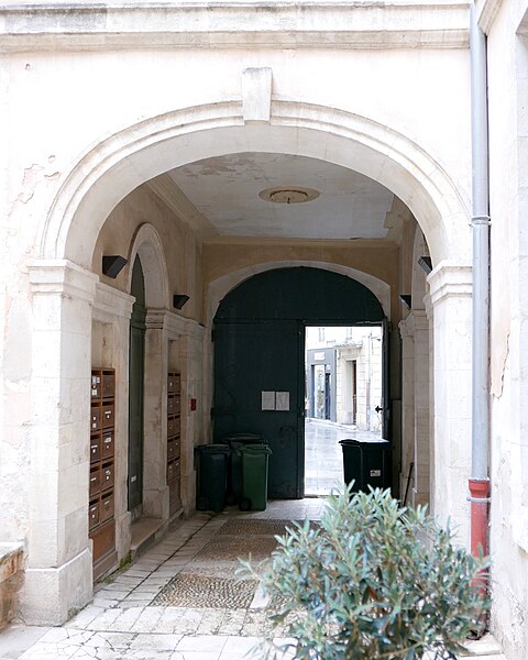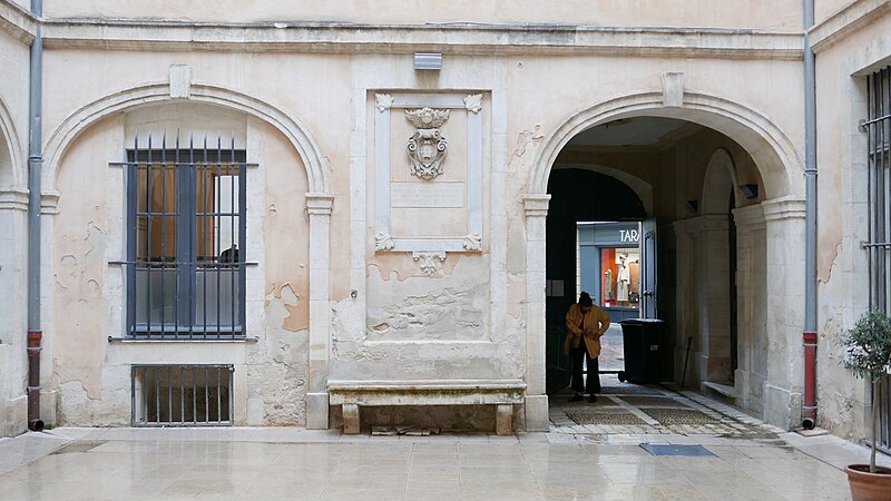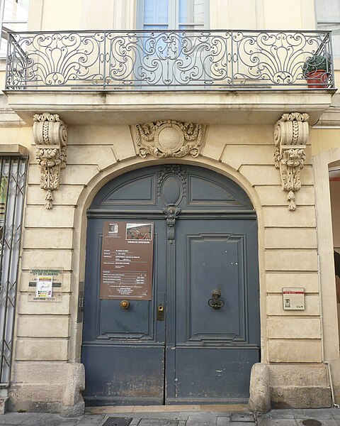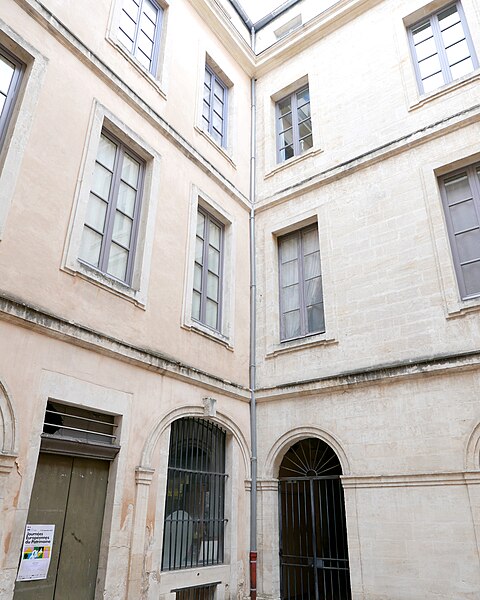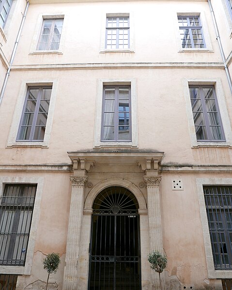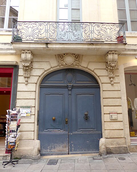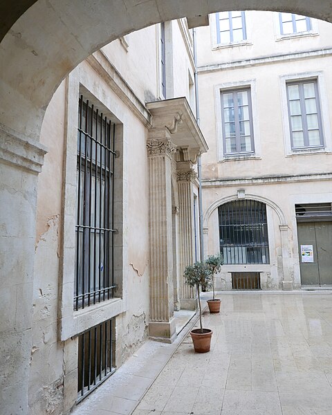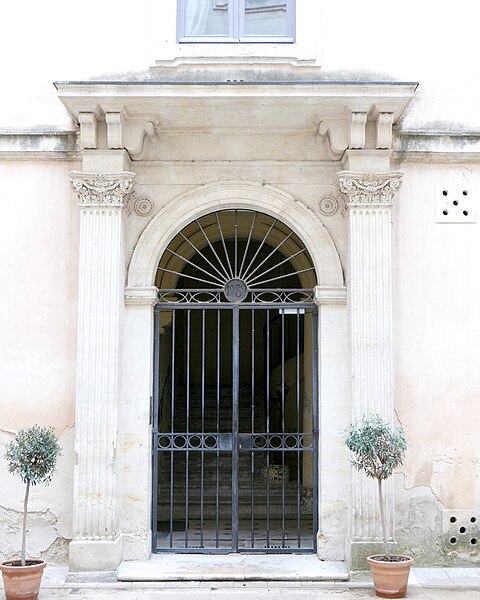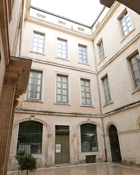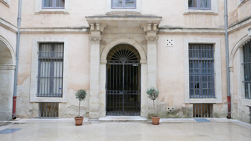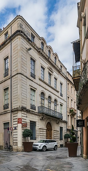 Immeuble dit Hôtel de Rozel, situé 1 rue de la Violette et 4bis rue Régale à Nîmes, inscrit au titre des monuments historiques depuis 1984. L'édifice occupe l'emplacement de trois maisons, dont l'une a laissé des façades sur cour datées de 1620. Acquis par Pierre de Rozel en 1759, il a fait l'objet d'une reconstruction dans les années 1773–1774. L'angle très ouvert entre les deux rues a permis de traiter l'ensemble des deux façades de rue comme une seule composition architecturale régulière, les façades et les toitures étant protégées au titre des monuments. Le portail s'ouvre sous un arc en anse de panier ; son encadrement et ses piédroits sont travaillés à refends et crossettes, et la clé de voûte porte un grand cartouche en médaillon ovale entouré de volutes, guirlandes et rubans. Un balcon droit, sans pilastres intermédiaires et composé de trois grands panneaux, repose sur deux grandes consoles décorées de guirlandes et de chutes de bourgeons. La façade nord sur cour comporte deux arcs en anse de panier ; le trumeau entre ces arcs présente un tableau rectangulaire aux angles ornés de feuilles, encadré d'un motif à palmette et enrichi de sculptures. La façade est sur cour s'ouvre par une porte flanquée de piliers à chapiteaux corinthiens ; ces chapiteaux portent, par l'intermédiaire de deux paires de consoles jumelées, un large entablement droit, et les écoinçons de l'arc sont décorés de marguerites. Au rez-de-chaussée de la façade sur la rue Régale, une statue en marbre blanc, probablement antique, a été incrustée dans le mur ; le personnage, vêtu d'une tunique simple, lève le bras gauche replié au-dessus de la tête tandis que le bras droit est mutilé. L'entrée de la cage d'escalier est encadrée par une porte bordée de colonnes corinthiennes et l'ensemble comporte également un balcon en fer forgé.