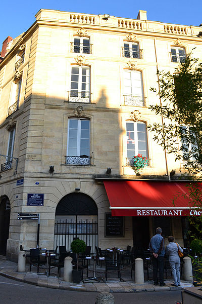 L'immeuble, situé place du Parlement — ancienne place du Marché Royal — occupe un quadrilatère irrégulier. Son ordonnance architecturale est homogène : un rez-de-chaussée commercial, deux étages nobles et un troisième étage traité en attique. L'ensemble, en pierre de taille, est couronné d'une corniche à balustrade et d'un comble. Les clés des voussures sont ornées de masques et de coquilles sculptés, et toutes les fenêtres sont dotées de balcons en fer forgé. La réalisation date de 1754.