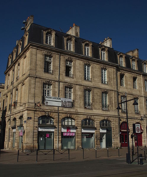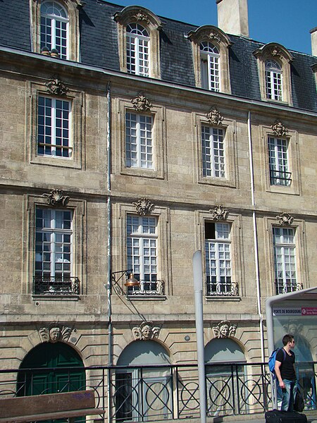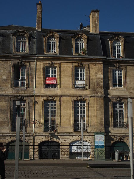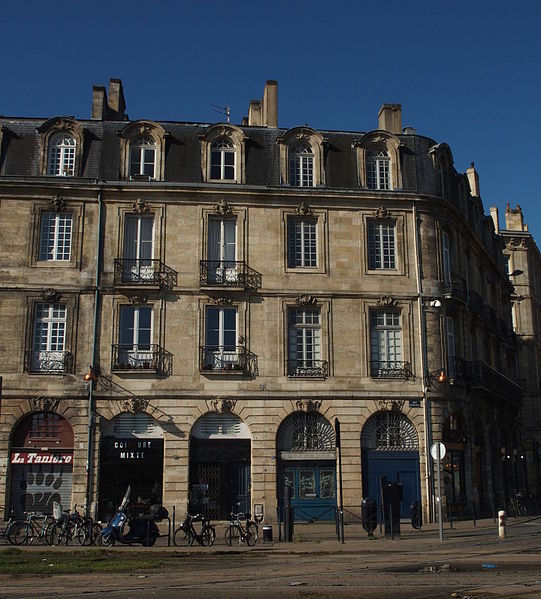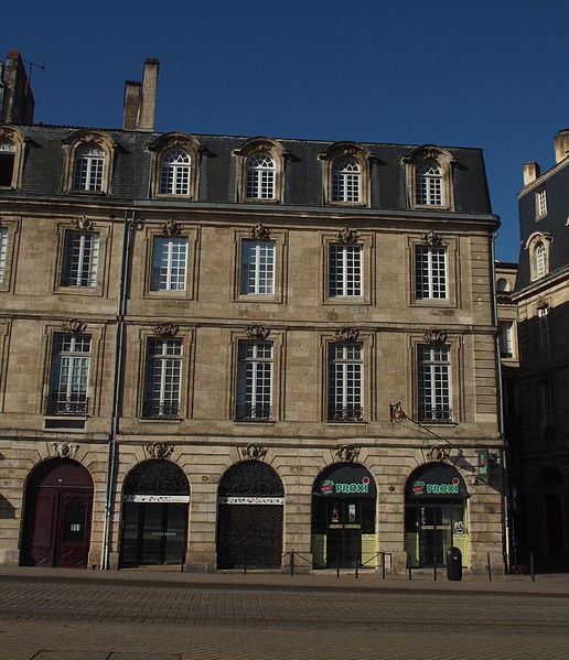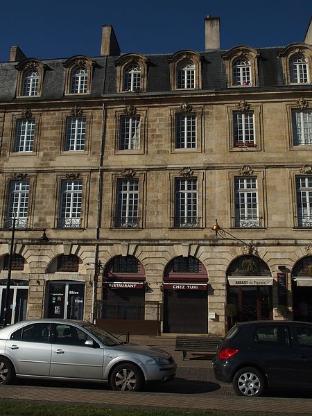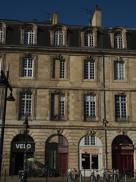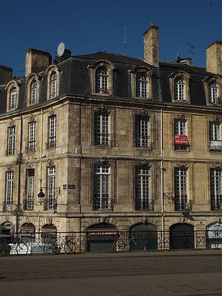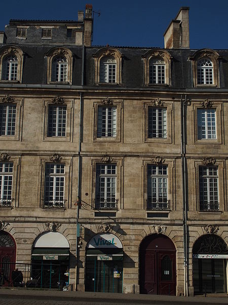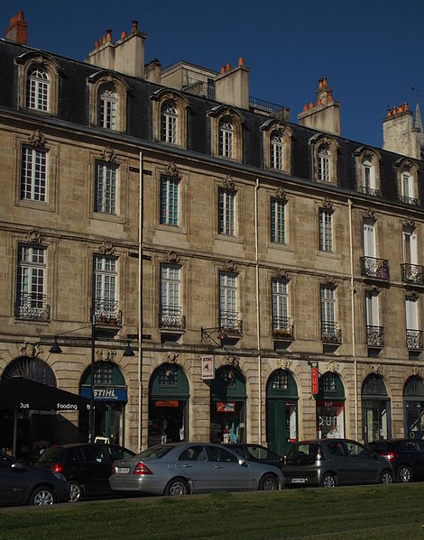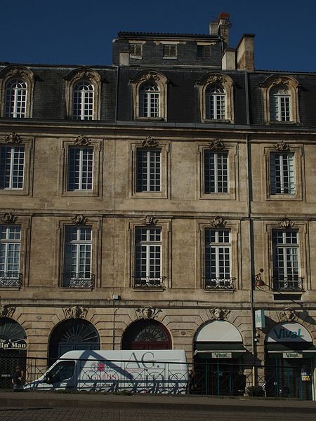 L'idée d'une place royale et d'une façade uniforme le long des quais de la Garonne a mis du temps à s'imposer. En 1729, Jacques Gabriel présente trois projets et, en 1731, il réalise le quai de la Douane et les façades en bordure du fleuve. En 1746, l'intendant Claude Boucher obtient des jurats l'acceptation de la première création d'un quai. À la mort de Boucher, Aubert de Tourny reprend le projet avec Ange-Jacques Gabriel, fils de Jacques. La perspective monumentale, édifiée en 1748 à l'initiative de Tourny, prolonge la place de la Bourse, ancienne place Royale, face au fleuve. L'ordonnance architecturale est homogène : un rez-de-chaussée et un entresol formant soubassement, inscrits dans une série d'arcades en plein cintre, puis deux grands étages carrés surmontés d'un comble à la Mansard percé de lucarnes en pierre. Le soubassement est souligné par des refends et de riches motifs sculptés aux clés des arcades. Si certaines façades ont perdu leurs appuis ou leurs balcons en fer forgé, elles conservent leur caractère grâce à leurs encadrements et à leurs larmiers d'origine. L'installation de magasins au rez-de-chaussée a parfois porté atteinte aux arcades.