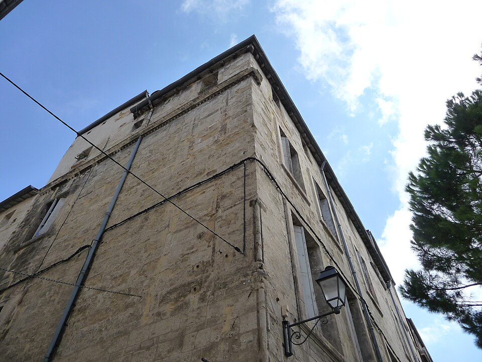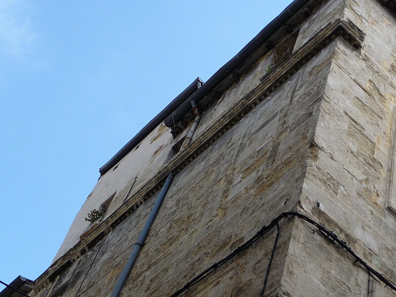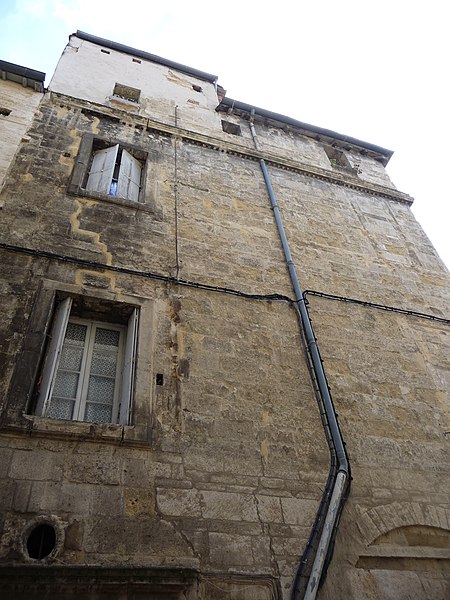 L'édifice reflète plusieurs phases de construction. Des éléments gothiques du XIVe siècle subsistent : des quadrilobes en façade, des arcs brisés avec tympans et linteaux dans la cour et l'escalier, un grand arc brisé et un chapiteau dans la cour, ainsi que le rez-de-chaussée voûté d'ogives. L'escalier en vis date de la fin du XVIe et du début du XVIIe siècle. La période moderne a entraîné le remaniement des façades, des baies et des boutiques. Des travaux de réfection des murs dans un appartement du deuxième étage ont mis au jour des vestiges architecturaux et un décor peint gothique. Il s'agit principalement de peintures murales du XIVe siècle représentant des motifs géométriques, végétaux et animaliers, ainsi que des personnages allégoriques. Ces découvertes témoignent des interventions successives qui ont marqué le bâtiment.
