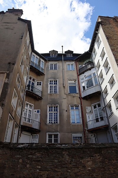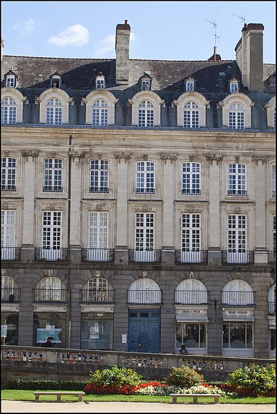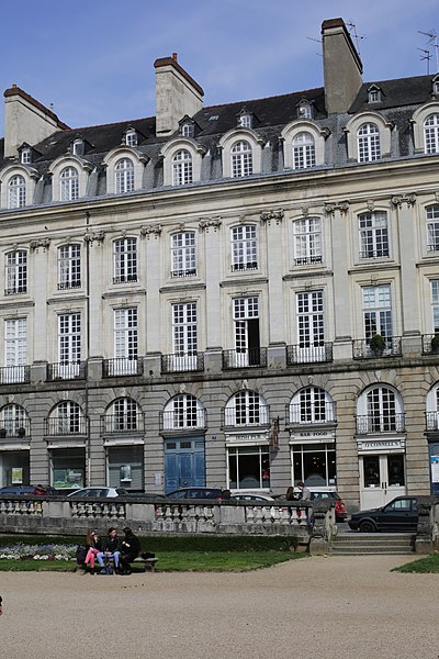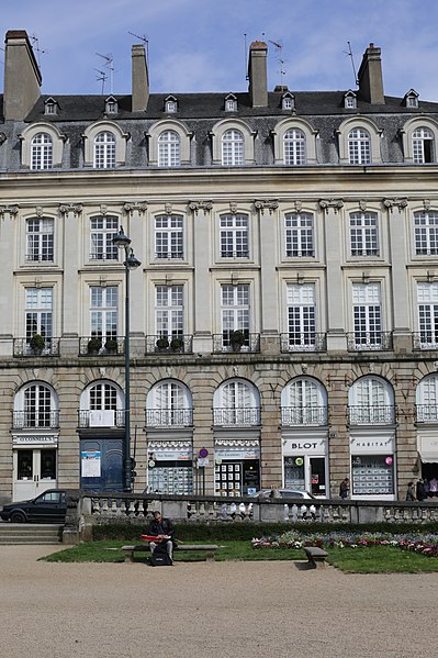 La place du Palais a été édifiée après l'incendie de 1720. Les maisons qui la bordent présentent de larges arcades de granit en plein cintre. Elles comportent un rez-de-chaussée, un entresol, deux étages et un étage de combles à la Mansart, et sont séparées par des pilastres ioniques.