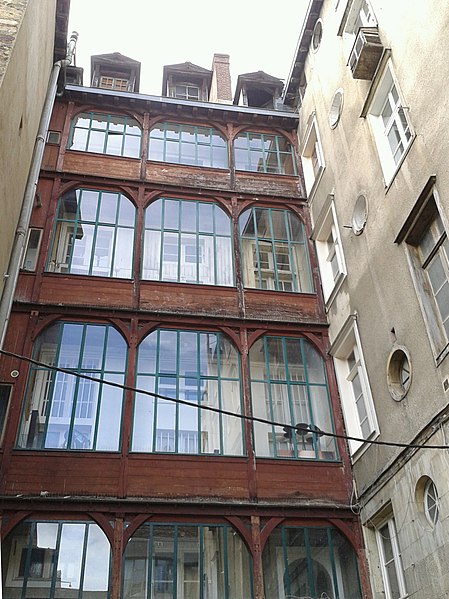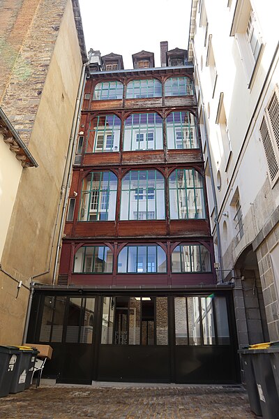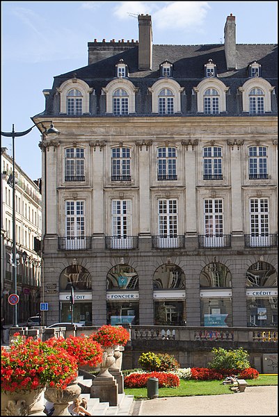 La place du Palais a été édifiée après l'incendie de 1720. Les maisons offrent de grandes arcades en plein cintre en granit ; elles comportent un rez-de-chaussée, un entresol, deux étages et un étage de combles à la Mansart, les travées étant séparées par des pilastres ioniques.