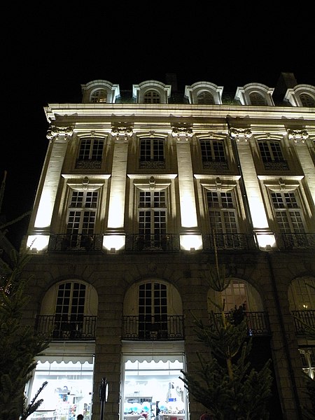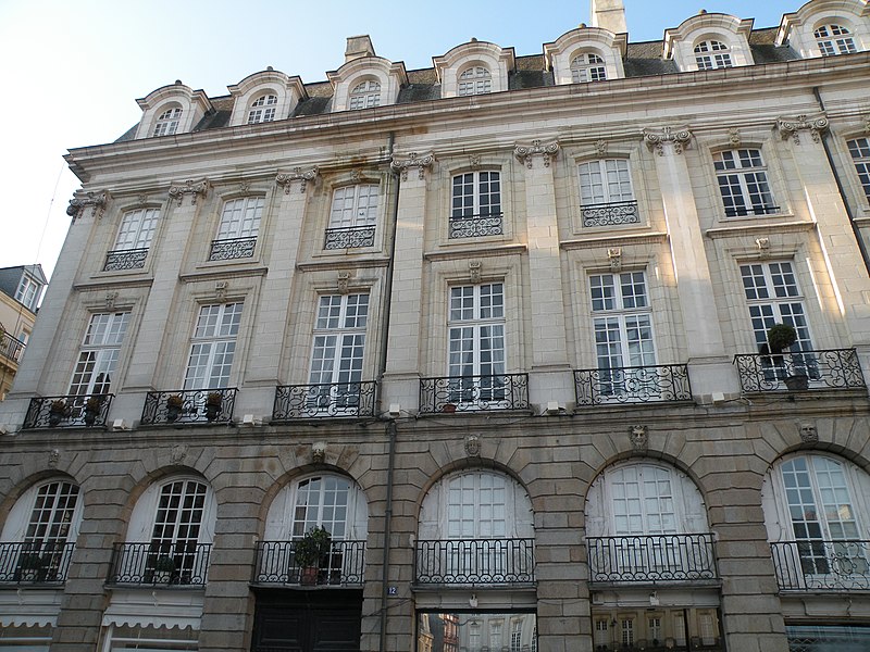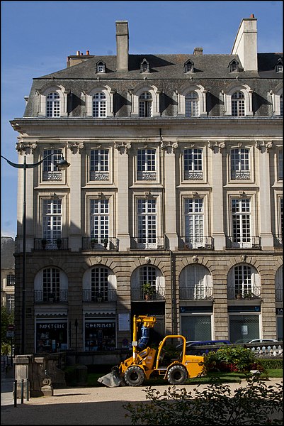 La place du Palais a été construite après l'incendie de 1720. Les maisons présentent de grandes arcades de granit en plein cintre, comprennent le rez-de-chaussée, l'entresol et deux étages, sont surmontées d'un étage de combles à la Mansart et sont séparées par des pilastres ioniques.