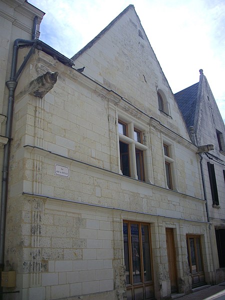 Située au 1 rue Anne-de-Bretagne à Langeais, la maison forme un ensemble avec le château et s'implante en bordure de la rue. Elle se compose d'un rez-de-chaussée, d'un étage et d'un comble, avec pignon sur rue. Le pignon est orné de quatre pilastres cannelés ; ceux situés aux extrémités sont surmontés, au premier étage, de chapiteaux de style Renaissance. Deux gargouilles à tête de chimère encadrent la façade. Les baies du premier étage sont divisées par deux meneaux en croix et le pignon comporte une fenêtre en plein cintre dont les écoinçons sont décorés de feuillages stylisés. La maison, comme plusieurs édifices voisins du château, a été édifiée au XVIe siècle. Sa façade et sa toiture sur rue ont été inscrites au titre des monuments historiques par arrêté du 17 septembre 1943. Pour approfondir, la bibliographie cite notamment les ouvrages dirigés par Jean-Mary Couderc et Jean-Luc Flohic ainsi que le guide de Robert Ranjard, et des ressources en ligne sont disponibles, notamment la base Mérimée et les portails consacrés à l'Indre-et-Loire et aux monuments historiques.