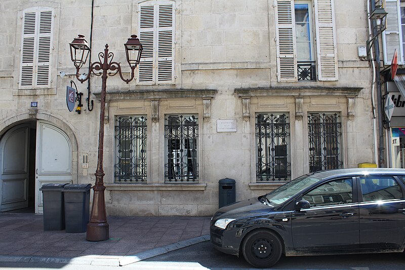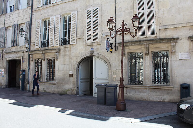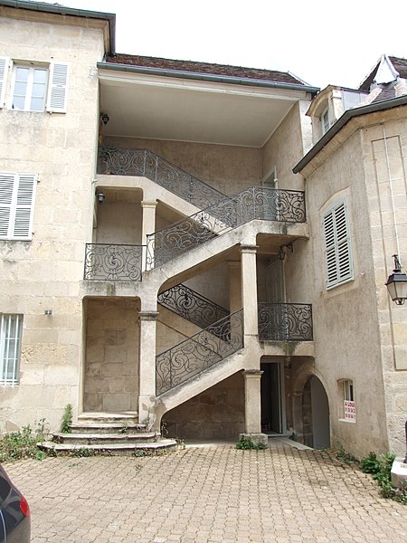 Escalier à rampe en fer forgé dans la cour : inscription par arrêté du 13 mars 1950