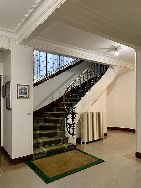 La façade, les toitures, le vestibule et la cage d'escalier sont inscrits au titre des monuments historiques.