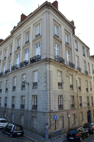 L'immeuble, situé au n°1 de la rue d'Argentré et dont la façade donne sur le cours Saint-André à Nantes, a été bâti en 1884. Il a été réalisé d'après les plans de l'architecte Aubry et inscrit au titre des monuments historiques par arrêté du 19 mars 1954. Le rez-de-chaussée et l'entresol sont en granite et pierre calcaire, tandis que les deux étages dits nobles sont en pierre calcaire. Les combles sont percés de lucarnes cintrées munies d'ailerons et la couverture est en ardoise.