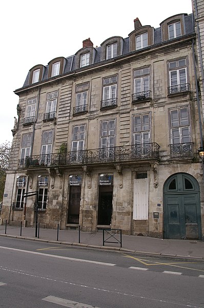 L'élévation conserve globalement le schéma imposé par Goubert : un rez-de-chaussée, un entresol et deux étages, le premier répondant à un balcon filant, mais la façade ouest compte six travées au lieu des cinq préconisées. Le bâtiment a toutefois évolué au fil du temps et s'est écarté du modèle initial : le comble à toit brisé empêche une couverture inclinée à 45°, et l'exhaussement de la chaussée a entraîné la suppression de l'entresol parce que la hauteur du rez-de-chaussée ne permettait plus d'absorber la modification — évolution partiellement comparable à celle de l'hôtel Grou mitoyen, dont les hauteurs d'étage sont plus importantes. Le balcon du premier étage présente un garde-corps en fer forgé et un socle en granit soutenu par des consoles sculptées. La partie sud de la façade ouest s'achève en amorce vers le bâtiment mitoyen alors projeté, continuité qui ne sera pas suivie lors de la construction de l'hôtel Grou entre 1747 et 1752.