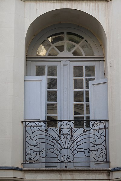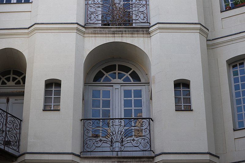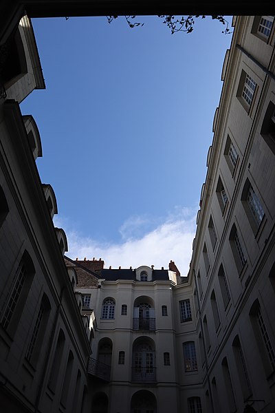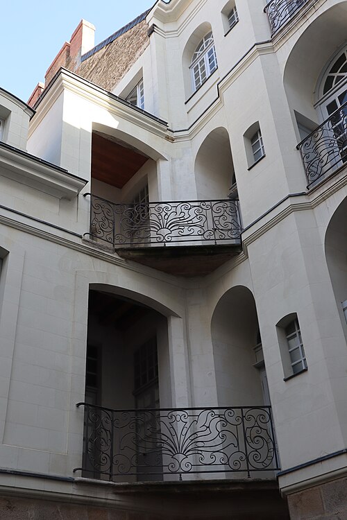 La conception de la cour intérieure reprend un type hérité des parcelles médiévales étroites, articulé autour d'un escalier desservant des coursières ou galeries ; l'architecte Pierre Rousseau avait déjà appliqué ce principe au Temple du Goût. La mise en commun de l'espace entre deux lots a permis de rendre les deux escaliers de distribution l'élément le plus monumental de l'ensemble, conférant à la cour son caractère distinctif et son nom de « Cour ovale ».