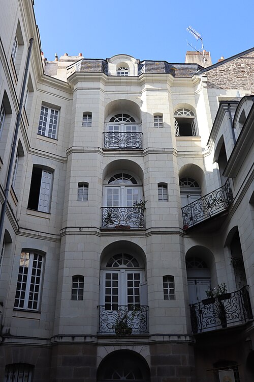 L'immeuble situé au n°9 du quai Turenne à Nantes a été bâti au XVIIIe siècle lors du lotissement de l'île Feydeau et a été inscrit au titre des monuments historiques le 5 décembre 1984. Lors du lotissement acté le 17 décembre 1733, les lots correspondant aux actuels n°9 et 9bis figuraient aux numéros 3 et 4 ; ils furent adjugés aux frères Bossinot du Motay et à Jean-Christosome Sauvaget pour des montants détaillés dans les ventes. En 1756, le marchand de bois Joseph Raimbaud acheta ces deux lots et fit édifier deux bâtiments qui encadrent une cour intérieure, ultérieurement appelée Cour ovale.
