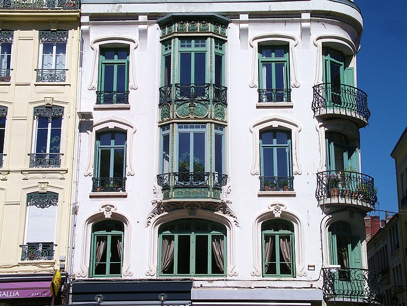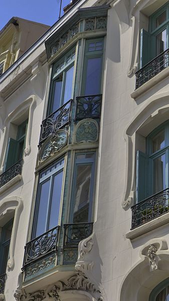 Édification de l'immeuble d'angle avec bow-window Art Nouveau.