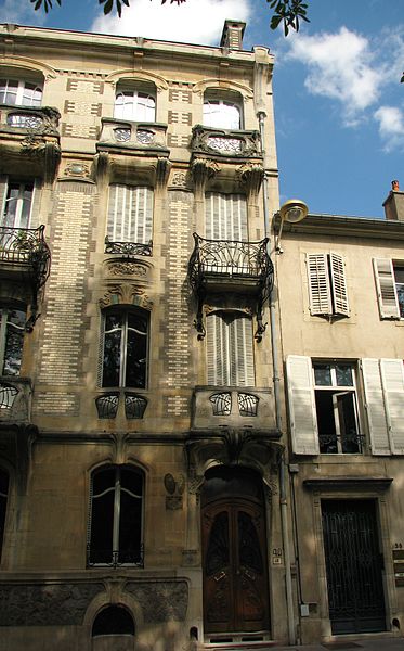 Immeuble de rapport construit de 1903 à 1904 pour Nicolas Kempf, négociant en bière à Nancy. La construction est attribuée, d'après une source, aux architectes nancéiens Félicien César (1849-1930) et son fils Fernand César (1879-1969) ; la date et les signatures figurent à l'angle gauche de la façade. Les panneaux décoratifs de la façade sur rue ont été réalisés par les céramistes Gentil et Bourdet, à Billancourt, selon une source. Les verrières sont de Jacques Gruber (1870-1936) ; la verrière d'imposte de la porte a été déposée.