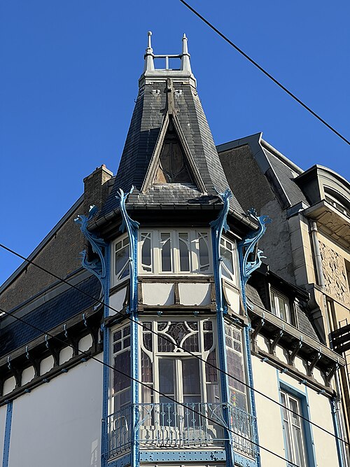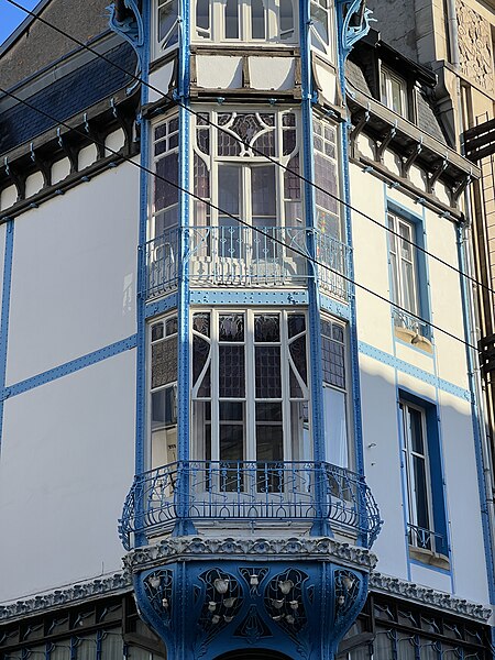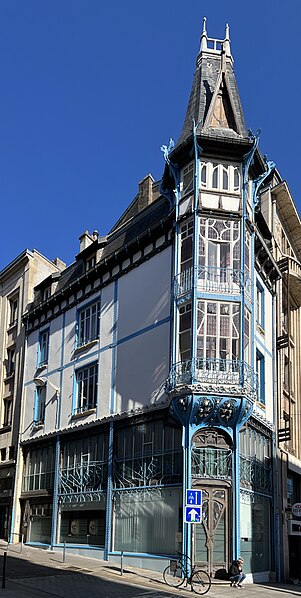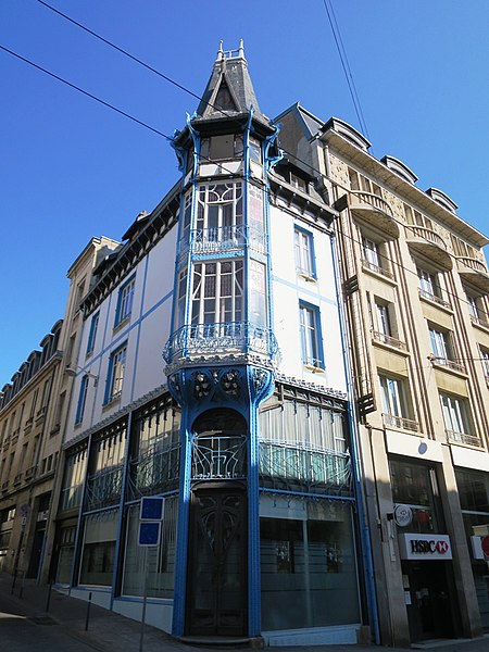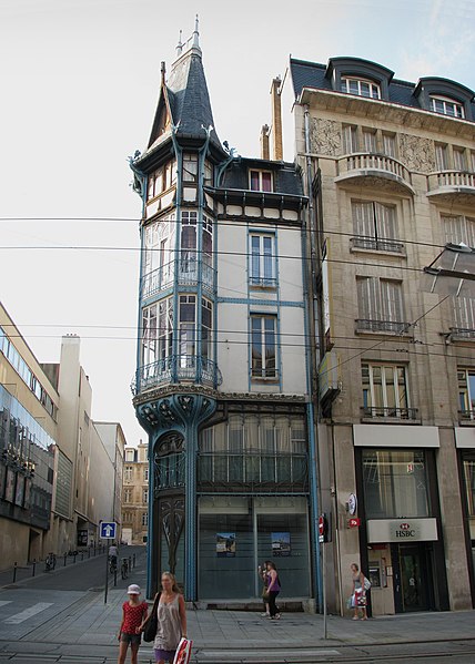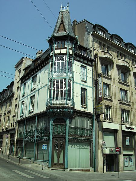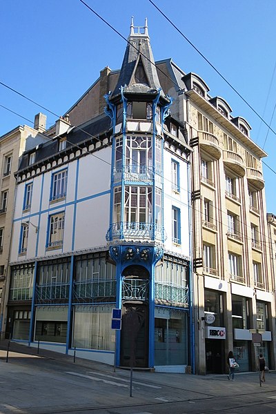 Immeuble dit graineterie Genin Louis, situé 52 rue Saint-Jean et 2 rue Bénit dans le quartier Charles III - Centre Ville de Nancy. Construit entre 1900 et 1901 pour Jules Genin et Camille Louis par les architectes Henri Gutton et son neveu Henry Gutton, l'édifice est le premier à Nancy à afficher une structure métallique apparente tout en accueillant des logements. Le gros œuvre fut réalisé par l'entreprise de construction métallique de Frédéric Schertzer, avec une structure métallique en acier riveté fournie par la maison Fould Dupont de Pompey; la maçonnerie fut exécutée par l'entrepreneur Guillemin et les hourdis par la maison Kalis fils. La céramique est l'œuvre d'Alexandre Bigot, et les quatre verrières décoratives intitulées "Les Glycines" sont attribuées au verrier nancéien Jacques Grüber. En février 1902, les combles furent détruits par un incendie. Menacé de destruction en 1973, l'immeuble a été restauré en 1975 ; les façades et toitures sur rues, y compris l'oriel, ont été inscrites au titre des monuments historiques par arrêté du 16 août 1976. L'escalier intérieur du magasin a été détruit et le décor peint au pochoir des façades, la marquise de la porte et les épis de faîtage de la flèche ont disparu. En 1902, l'architecte Emile André installa ses bureaux au deuxième étage. Représentatif du courant rationaliste inspiré par Viollet-le-Duc, l'ouvrage exploite la structure métallique rivetée pour répondre à l'exiguïté de la parcelle d'angle et à la présence du magasin aux deux niveaux inférieurs, tandis que les trois niveaux supérieurs sont aménagés en logements; la structure métallique soutient une charpente en bois. La décoration, concentrée sur l'oriel et les baies inférieures, associe motifs végétaux et ferronnerie : à la base de l'oriel, des fleurs et des capsules de pavot en fer forgé rappellent la fonction commerciale, et au sommet les montants d'acier se terminent par des motifs végétaux stylisés évoquant ceux des grilles. Œuvre originale née d'une collaboration entre architectes et ingénieurs, cet immeuble réalise la synthèse recherchée par l'École de Nancy entre structure et décoration, forme et fonction, et son procédé de construction audacieux suscita de nombreuses critiques sans donner lieu à une diffusion généralisée.