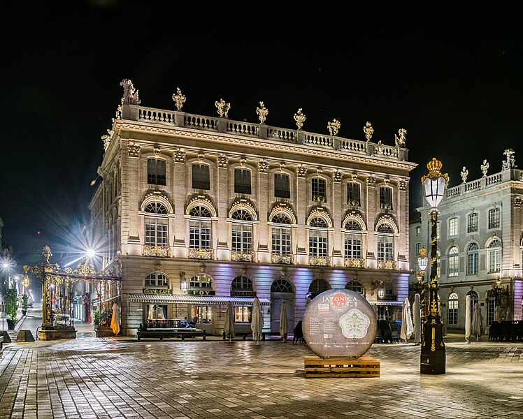 La place Stanislas, inscrite au patrimoine mondial de l'UNESCO depuis 1983, est un ensemble urbain classique situé à Nancy, voulu et financé par le duc Stanislas Leszczyński et réalisé de 1751 à 1755 sous la direction d'Emmanuel Héré. Située à la limite nord‑est du centre‑ville, elle relie la Ville‑Vieille et la Ville‑Neuve et joue un rôle structurant dans l'urbanisme de la cité. De dimensions modérées (106 m sur 124 m), son originalité tient à l'homogénéité de son aménagement et à la qualité architecturale qui évoque plus une capitale d'Ancien Régime qu'une ville provinciale. Appelée familièrement « place Stan », elle a porté successivement plusieurs noms en fonction des aléas politiques avant de reprendre définitivement celui de Stanislas en 1831. Destinée à rassembler les institutions et les lieux de divertissement au croisement d'axes majeurs, la place dut cependant composer avec les fortifications subsistantes, contraintes qui influencèrent sa conception et son architecture. Pour mener à bien le projet, Stanislas prit à sa charge d'importantes dépenses pour la construction des façades et des bâtiments publics, et il s'entoura d'architectes et d'artistes de premier plan. Après une première attribution du chantier à Jean‑Nicolas Jennesson, Emmanuel Héré fut chargé de la réalisation ; la pose de la première pierre du pavillon Jacquet eut lieu le 18 mars 1752 et les travaux mobilisèrent jusqu'à 400 ouvriers simultanément. L'inauguration solennelle, marquée par de vastes célébrations, se déroula le 26 novembre 1755. Dès l'origine, la place fut ornée de grilles en fer forgé doré par Jean Lamour, de fontaines rococo représentant Neptune et Amphitrite et d'un arc de triomphe conçu par Héré pour ouvrir la perspective vers la place de la Carrière. Le centre de la place a d'abord été occupé par une statue de Louis XV, fondue pendant la Révolution, puis remplacée en 1831 par le monument à Stanislas réalisé par Georges Jacquot. Les bâtiments qui ceinturent la place, tous signés par Emmanuel Héré, forment un ensemble classique d'ordre corinthien comprenant l'hôtel de ville qui occupe tout le côté sud, les grands pavillons (Grand Hôtel de la Reine, pavillon Jacquet, Opéra‑théâtre et Musée des Beaux‑Arts) et deux petits pavillons appelés basses faces. L'Opéra‑théâtre, l'ancien hôtel des fermes, et le pavillon du Musée des Beaux‑Arts ont connu des reconversions et des restaurations au fil du temps, comme l'extension et la rénovation menées respectivement au XXe siècle. Les aménagements du sol et de l'éclairage ont été remaniés à plusieurs reprises : les tentatives de réfection du XIXe et du XXe siècle, une opération de nivellement et de pavage en 1958 qui s'est révélée inesthétique et l'interdiction du stationnement en 1983 sont autant d'étapes d'une longue histoire urbaine. À l'occasion du 250e anniversaire, une réhabilitation extensive a rendu à la place sa configuration d'origine : piétonnisation, renouvellement du pavement avec diagonales de pavés noirs, restauration des façades et des grilles, redéfinition de l'éclairage et réaménagement des trottoirs. Pilotée par l'architecte en chef des monuments historiques et des spécialistes, cette opération a été financée par la ville, l'État, la région et le département pour un budget de 8 millions d'euros et a été inaugurée en 2005. Une capsule temporelle destinée aux générations futures a été enfouie sous la place et signalée par un pavé « étoilé ». Les grilles et fontaines, l'arc de triomphe et l'ensemble du domaine public de la place ont fait l'objet de classements successifs au titre des monuments historiques, tandis que l'ensemble urbain formé par la place Stanislas, la place de la Carrière et la place d'Alliance est inscrit sur la liste du patrimoine mondial de l'UNESCO. La place demeure un lieu vivant, théâtre de manifestations culturelles et festives, et attire chaque année un public nombreux ; elle a par ailleurs été élue Monument préféré des Français en 2021.