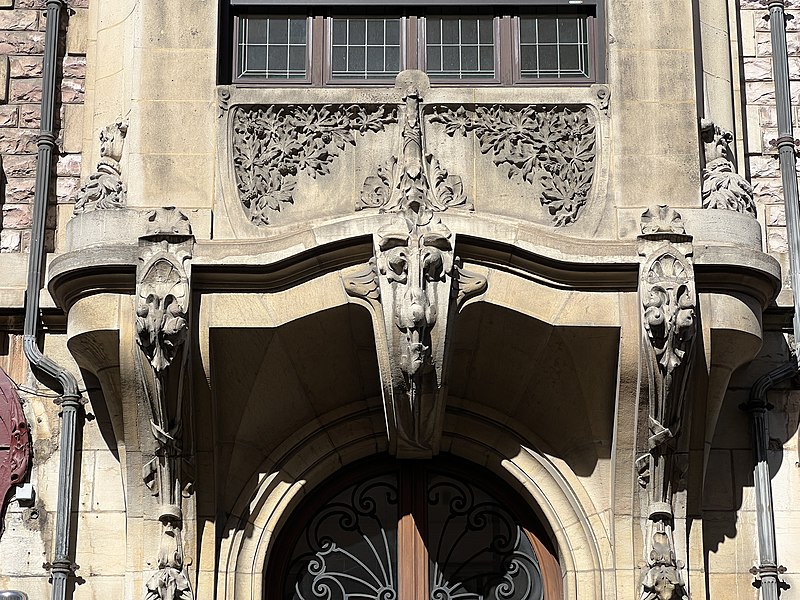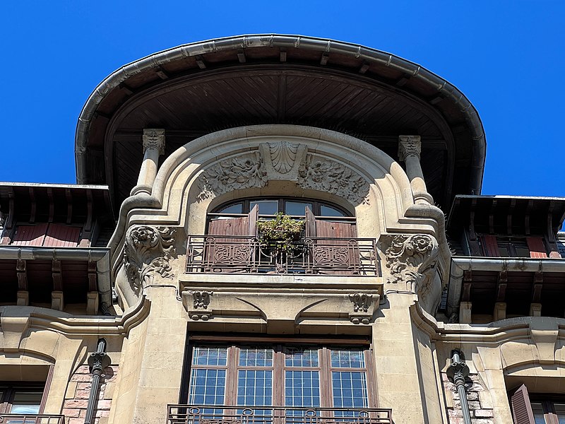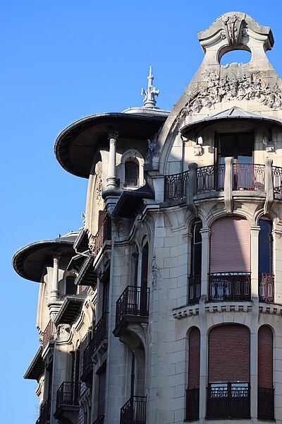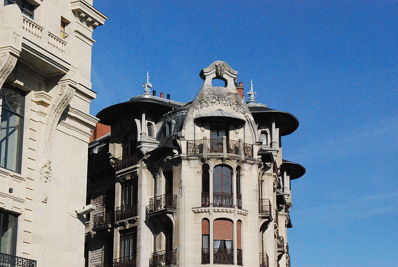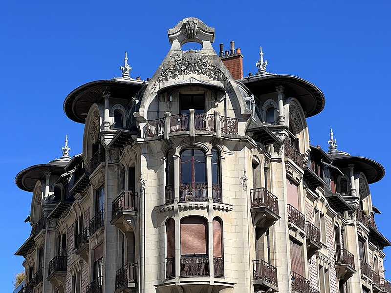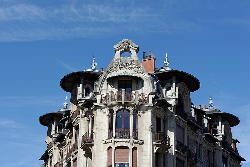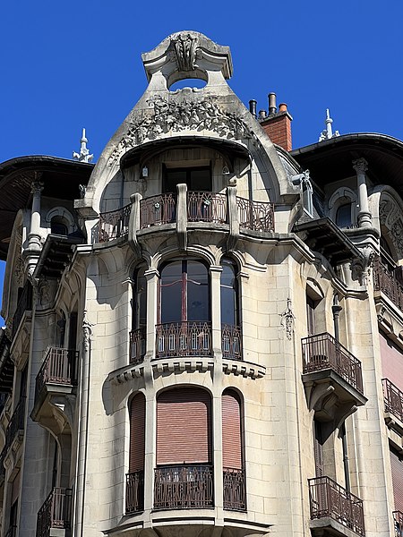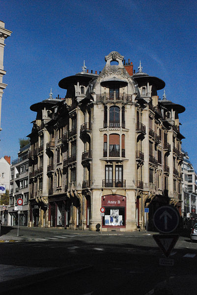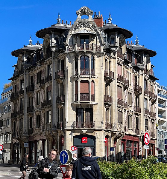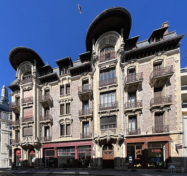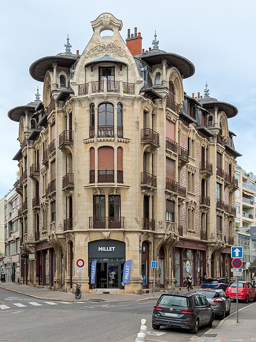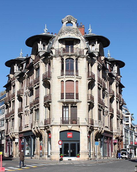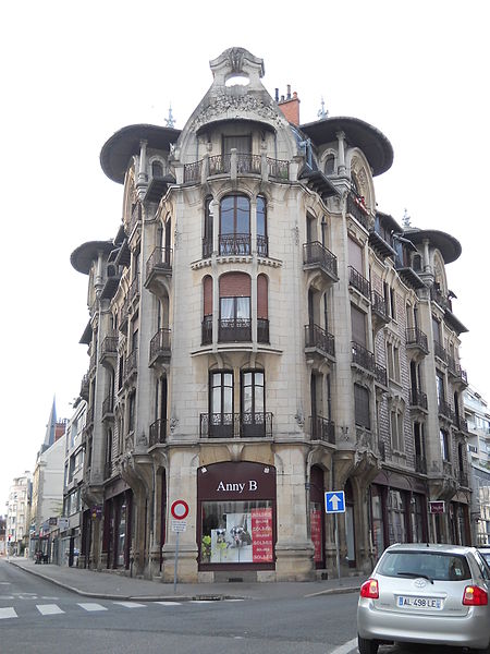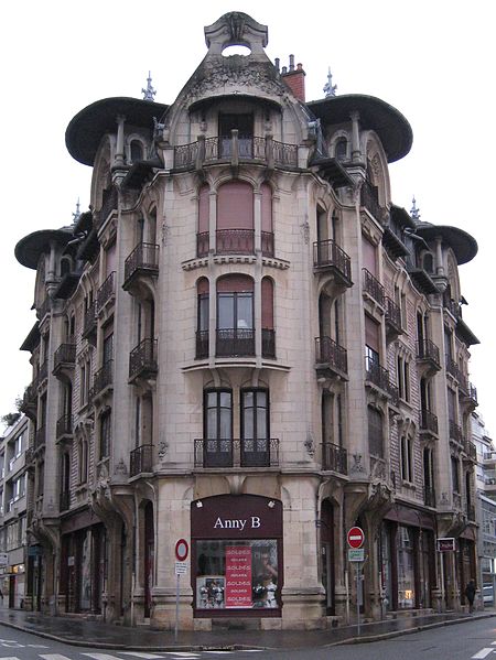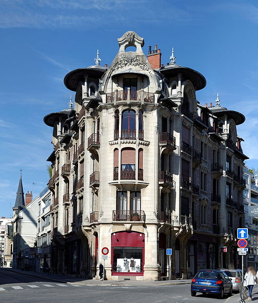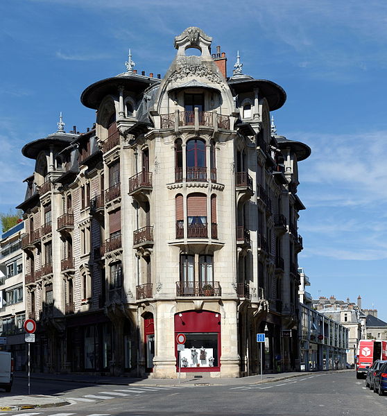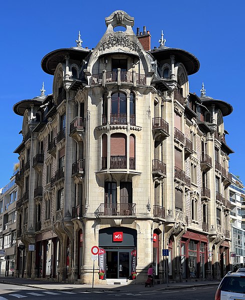 Immeuble Art nouveau situé à Dijon (Côte-d'Or), cet édifice a été conçu par l'architecte Louis Perreau (1868-1925) ; le permis de construire a été délivré le 31 décembre 1906 et ses façades et toitures sont inscrites au titre des monuments historiques par arrêté du 29 octobre 1975. Édifié à l'angle de deux voies sur un terrain en éventail, il présente deux façades identiques sur la rue du Château et la rue du Temple, ornées chacune d'oriels sculptés de motifs végétaux — feuilles de marronnier, feuilles et pommes de pommier, feuilles et noisettes de noisetier, feuilles de poirier en fleurs — et surmontées de grandes lucarnes cintrées couvertes par des toitures à croupe ronde débordante. Ces façades sont reliées par un pan coupé tourné vers la place Grangier, couronné au niveau de la toiture par un fronton de pierre sculpté de feuilles de vigne et de grappes de raisin. Le rez-de-chaussée abrite des magasins dont les devantures, pour la plupart bien préservées, contribuent par leurs lignes Art nouveau à l'unité stylistique de l'édifice. L'immeuble jouxte la poste Grangier, édifiée de 1907 à 1909 par le même architecte dans un style inspiré du Louis XVI, moins novateur. Plusieurs publications et ressources en ligne (catalogues et portails patrimoniaux tels que Mérimée et Structurae, ainsi que des guides régionaux et travaux locaux) évoquent ce bâtiment, le qualifiant alternativement d'« immeuble », d'« immeuble de rapport » ou d'« immeuble Art nouveau ».