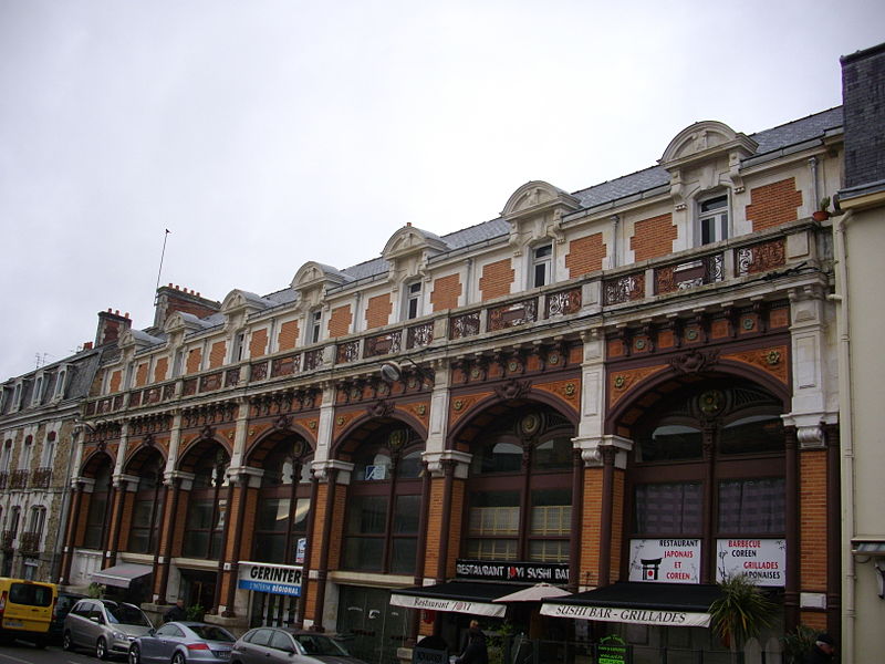 L'immeuble des anciens établissements Petit-Fers a été construit entre 1894 et 1906 par la famille Petit, négociants en métaux. Il présente une ossature métallique de type Baltard et un plan en T, avec une façade-vitrine richement décorée mêlant granit, calcaire (tuffeau), brique, fonte et céramique, qui illustre l'art industriel de la fin du XIXe siècle. L'opération a été engagée à la suite d'une demande de Jean Petit formulée en 1892 et menée vers 1893-1894. L'édifice occupe l'emplacement de l'aile sud et de la cour intérieure de l'hôpital Saint-Nicolas, en bordure de la rue Alain Le Grand, ouverte lors de la construction de la nouvelle préfecture. Une vue aérienne de Lancrenon, datée de 1893, montre que la charpente métallique des halles arrière a été mise en place avant celle du corps sur rue. Avant cette construction, Jean Petit avait déjà édifié, sur des parcelles acquises à partir de 1867, deux grands immeubles d'habitation mitoyens : l'un sur la rue Francis Decker, l'autre à l'angle des rues Alain Le Grand et Francis Decker, correspondant aux parcelles K 875, 870 et 871 du cadastre de 1844. Un plan de 1876 indique l'alignement demandé pour l'immeuble d'angle et la construction en cours de l'immeuble bordant la rue Francis Decker. Selon la demande de 1892, il s'agissait d'édifier des magasins adjacents à l'immeuble d'angle, qui abritait déjà au rez-de-chaussée un commerce de quincaillerie ; Jean Petit a renouvelé sa demande le 1er juillet 1893 pour prolonger d'un an son autorisation de construire. La vue aérienne montre également, dans la cour arrière, un corps de bâtiment oblique, jointif au premier immeuble de la rue Francis Decker, vraisemblablement utilisé comme hangar ou bureaux ; ce corps sert de point d'attache aux petites ailes latérales de la halle centrale une fois l'édifice achevé. En 1906, Jules Petit, fils de Jean Petit, est domicilié au dernier étage du corps principal et déclaré propriétaire des établissements. L'exploitation a été reprise par les établissements Yves Lepage, « entrepôts métallurgiques de Basse-Bretagne », avant d'être acquise en 1974 par les Comptoirs métallurgiques de Bretagne, qui ont déménagé en 1975. Par la suite, les bâtiments ont été transformés partiellement en galerie marchande, dite « Les Arcades », puis l'un des espaces a accueilli une pizzeria-cafétéria en 1999 ; une grande partie de l'immeuble est inoccupée depuis le début des années 2000 et a été rachetée par un assureur vannetais envisageant d'y installer une galerie commerciale. Les anciennes cartes postales témoignent des modifications de la façade principale, notamment le démontage du mur-bahut formant soubassement sous quatre baies pour permettre l'installation de vitrines. Le volume commercial intérieur a été profondément remanié pour accueillir plusieurs boutiques et bureaux, l'ancienne entrée des entrepôts sur la rue Francis Decker ayant été transformée en passage de distribution, et le dernier niveau d'habitation, initialement occupé par un seul appartement, ayant été divisé en plusieurs logements. Le nom de l'architecte reste inconnu ; en revanche, les colonnes de fonte portent la marque des établissements Fontanet père et Morel, entrepreneurs et constructeurs de charpentes en fer installés boulevard de Grenelle à Paris à la fin du XIXe siècle, entreprise présente à plusieurs reprises, notamment à Tonnerre pour le marché couvert de 1903 et pour des réalisations à Paris. Les façades, les toitures et la structure métallique de l'immeuble font l'objet d'une inscription au titre des monuments historiques depuis le 30 mai 2000, et l'édifice est intégré au secteur sauvegardé de Vannes.