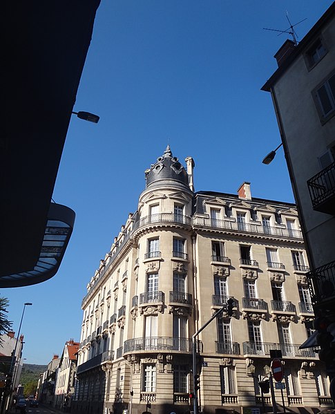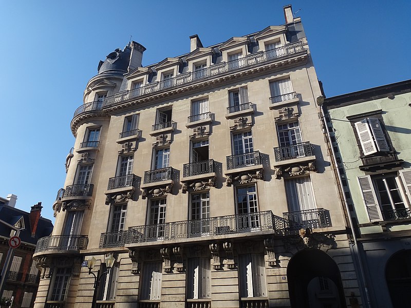 Immeuble de rapport néo-haussmannien commandé en 1903 à l'architecte Emile Chassaigne, de style Beaux-arts néo-Louis XVI, il reprend le modèle de l'immeuble bourgeois parisien, avec un balcon continu au niveau supérieur et une tourelle d'angle coiffée d'une coupole. Un passage d'entrée couvert dessert une cour intérieure qui comporte deux cages d'escalier : l'une, dans-œuvre, est pourvue de baies rampantes ; l'autre, hors-œuvre et à toit-terrasse, abrite deux escaliers côte à côte, l'un d'honneur équipé d'un ascenseur et l'autre de service.